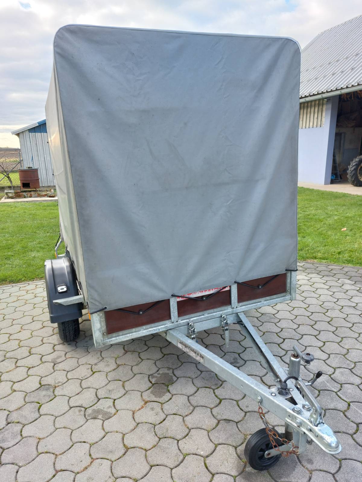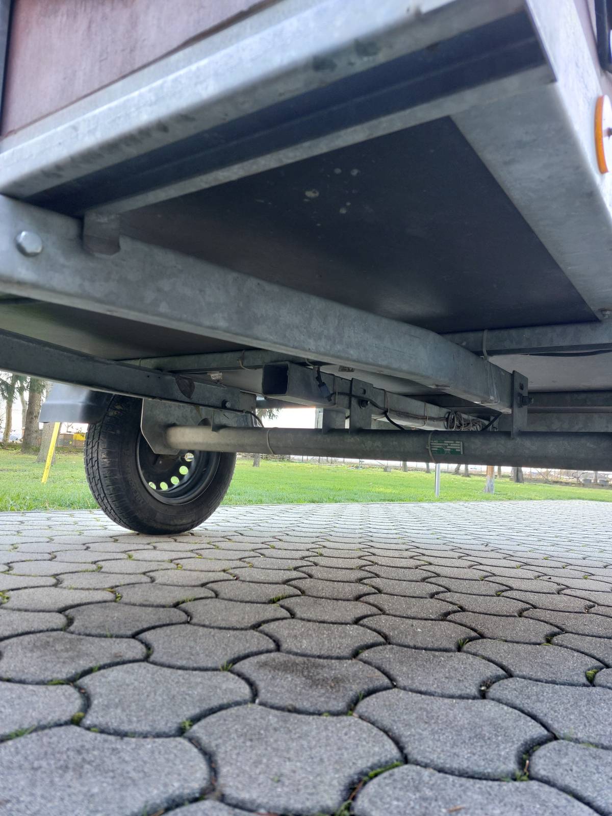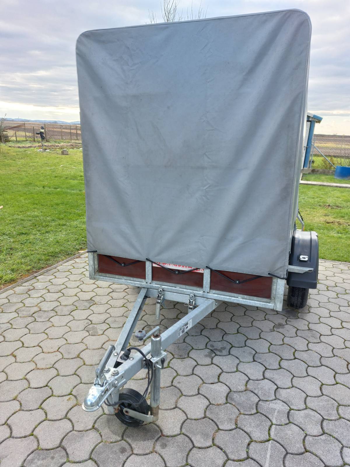 Sanduk prikolice je od pocinčanih čeličnih profila ispunjen vodootpornim pločama što joj daje potpunu čvrstoču .