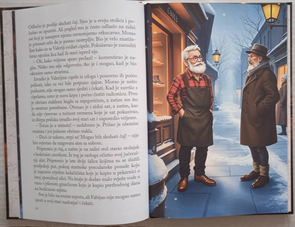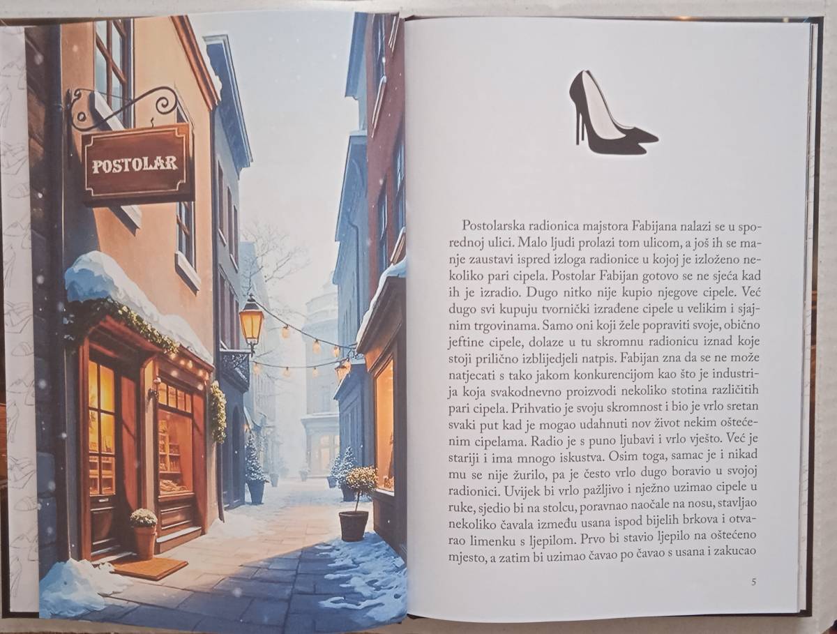 Postolar Fabijan ima skromnu radionicu u sporednoj ulici. Uglavnom popravlja stare cipele i zadovoljan je time. Ali malo prije Božića u radionicu je ušla gospođa Valerija i on je dobio narudžbu za izradu cipela nakon veoma dugo vremena. Izradio je cipele s velikim oduševljenjem i na vrijeme, ali gospođa Valerija se nije pojavila u njegovoj radionici. Fabijan na pomalo neobičan način doznaje što se dogodilo.
