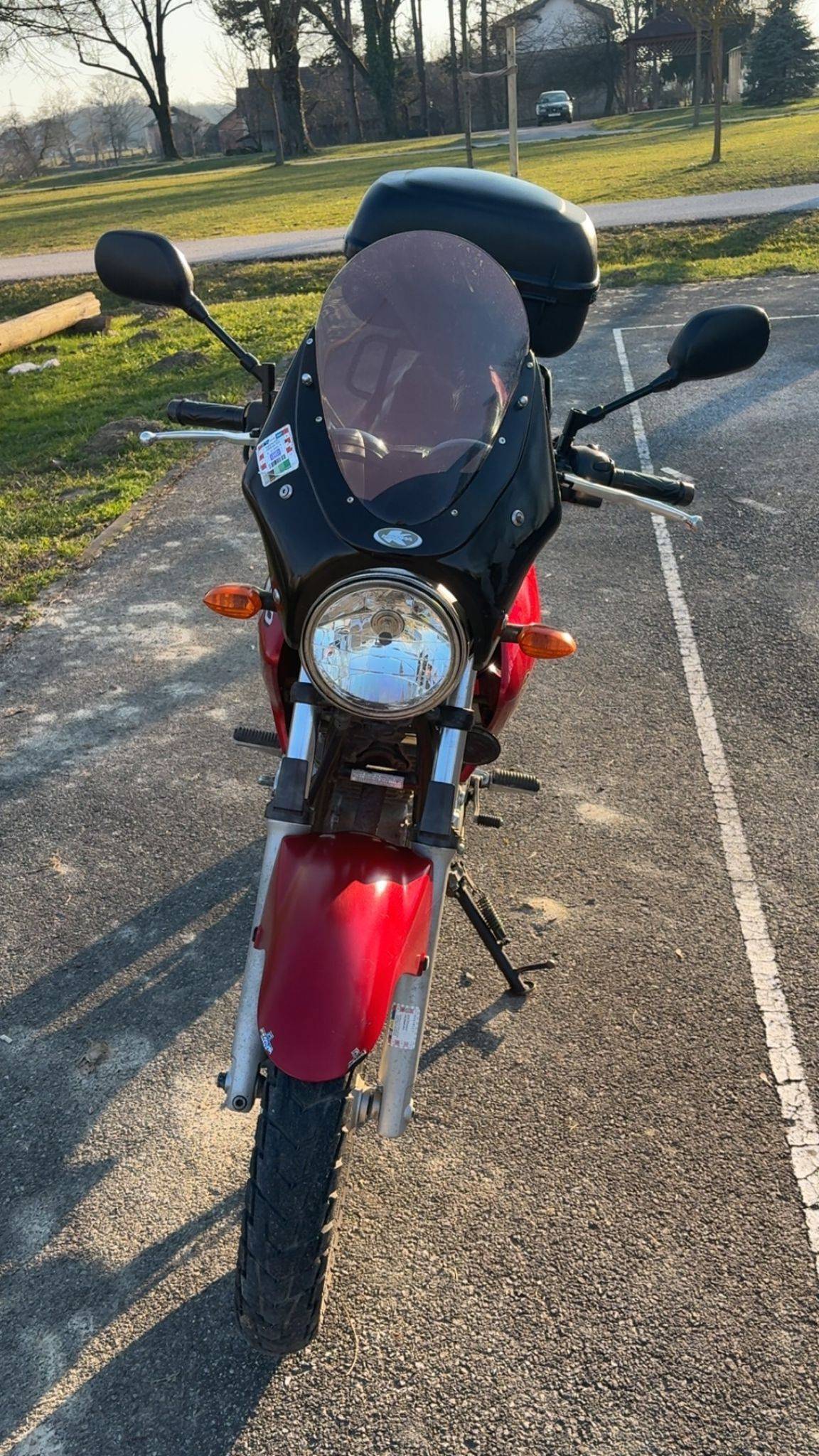Yamaha ybr250ccm,2007g,registriran do 09/2026.uščuvan,servisiran,nove disk pločice,ulje,pakne,lanac i lančanici,gume dobre,kofer,vizir,putni kompjutor,40000km,vlasnik 8 godina,japanac.Jeftin za održavanje,potrošnja 3.5l,oko 150e rega.Info.0915874473.zamjena za skuter sa papirima 2t yamaha, Peugeot do 700e