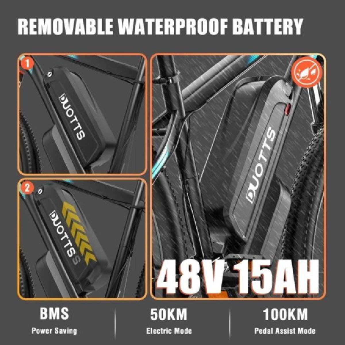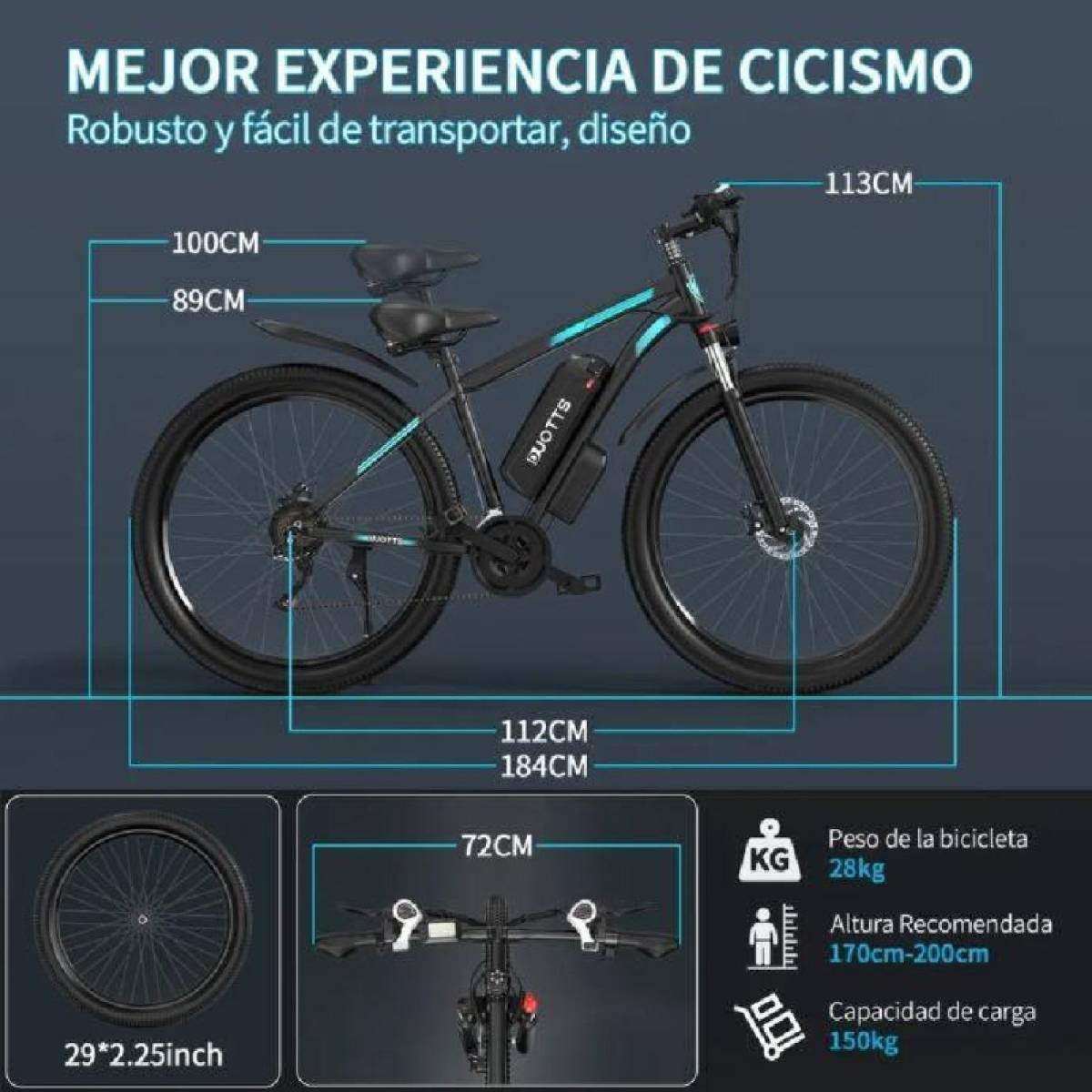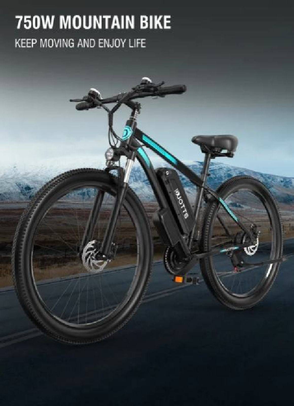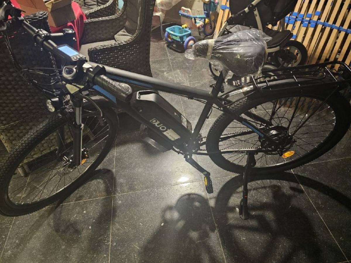 Električni bicikl Duotts C29 Pro baterija 48V 15Ah.Motor je 750W.Sa punjenjem može prijeći 100Km uz pomoć pedaliranja.Maximalna brzina 55Km.Bicikl je novi.Na biciklu od opreme ima svijetlo led,trubu,mjerač brzine,nogica,blatobrani.Odvojiva baterija od 15 Ah može se puniti na ili izvan okvira; BMS sustav štiti bateriju, produžujući vijek trajanja.