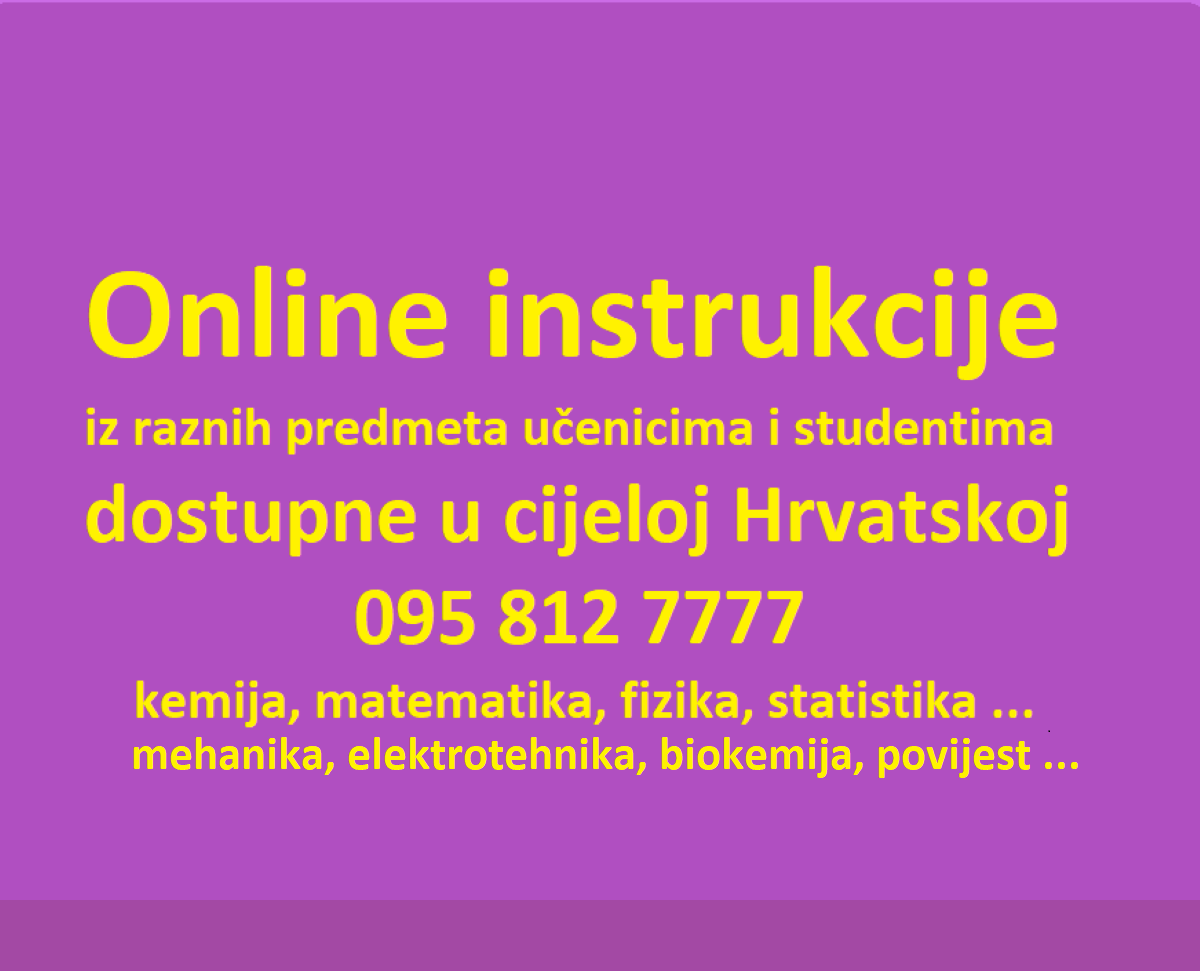INSTRUKCIJE IZ MATEMATIKE, FIZIKE, KEMIJE, BIOKEMIJE, STATISTIKE, OSNOVA ELEKTROTEHNIKE, MEHANIKE, TERMODINAMIKE, BIOLOGIJE, POVIJESTI, HRVATSKOG, GEOGRAFIJE, VJEROJATNOSTI i drugih predmeta, PODUKE, REPETICIJE, LEKCIJE.
