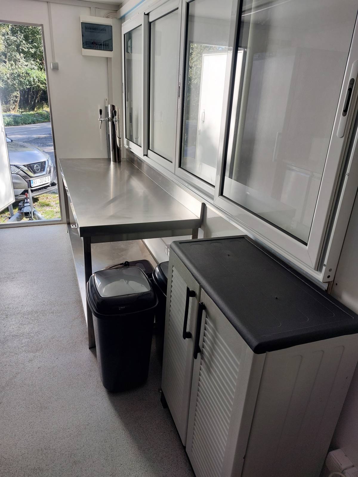Mobilni priključni objekt sa duplom osovinom, najveće dostupne dužine 6m, širine 2,3m i visine 2,2m (unutarnje dimenzije). Izrađeno po narudžbi 2023g.