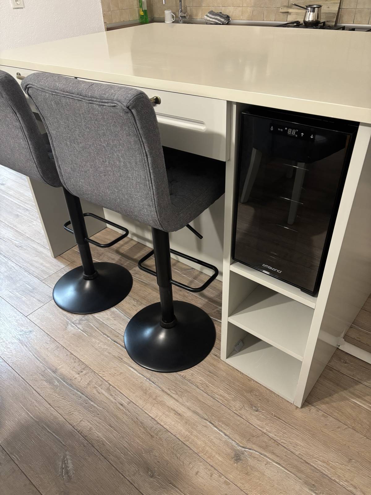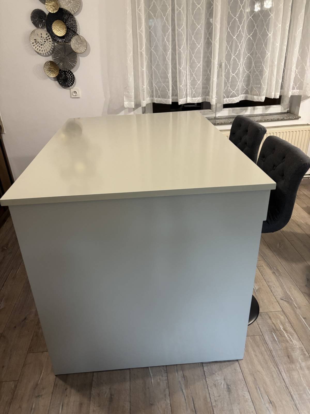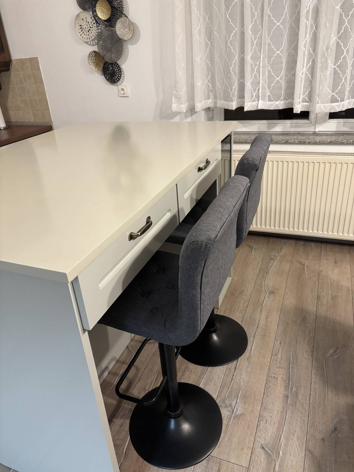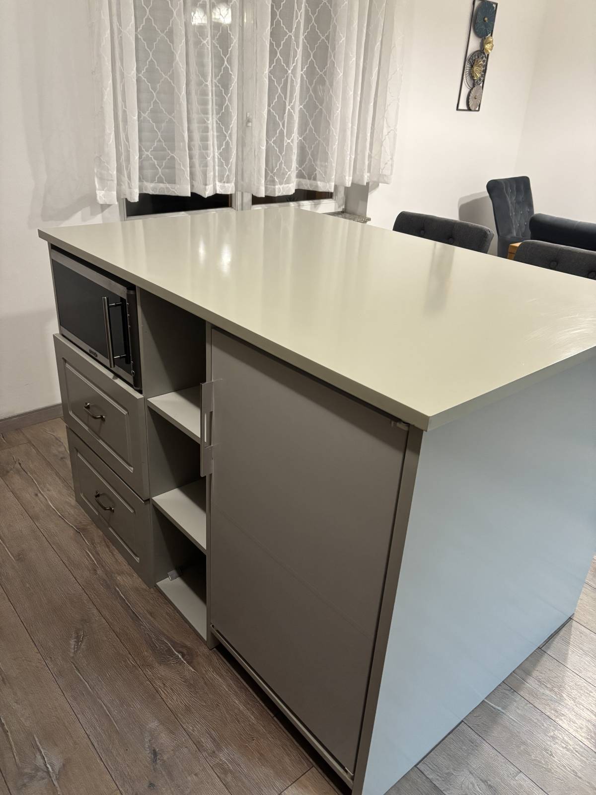Prodajem kuhinjski otok svjetlo sive boje izgrađen od MDF-a (medijapan), starosti oko četiri godine. Navedeni otok je dimenzija 150 cm (D) X 100 cm (Š) X 100 cm (V), a u sklopu otoka se nalazi ugradbeni frižider "Gorenje", mikrovalna pećnica "Gorenje", te mali vinski frižider i dvije barske stolice. Otok je u vrlo dobrom stanju kao i barske stolice, dok su navedeni uređaji potpuno ispravni.