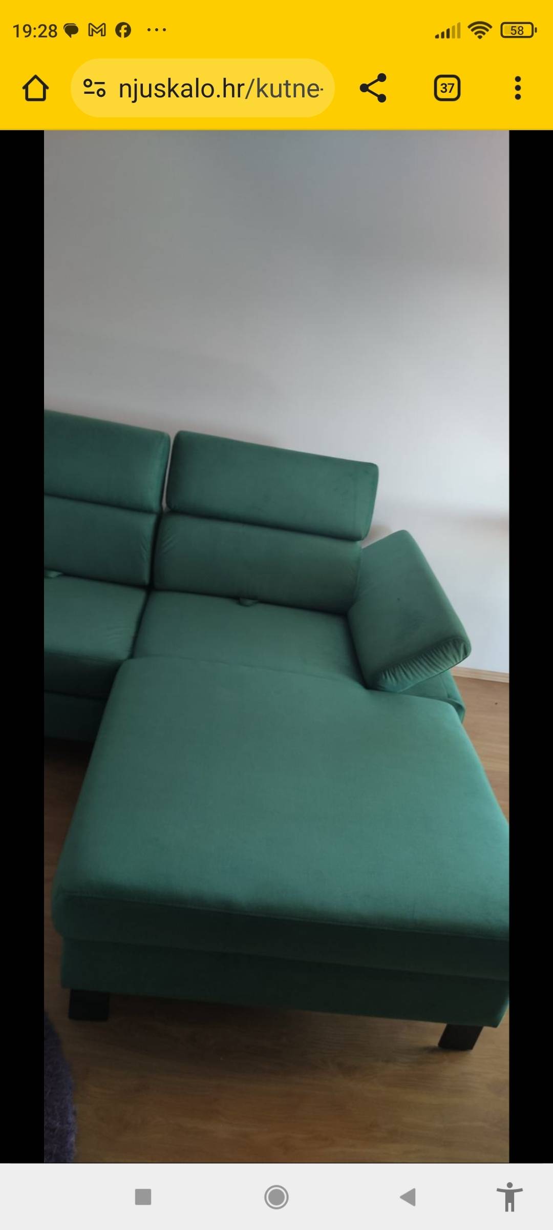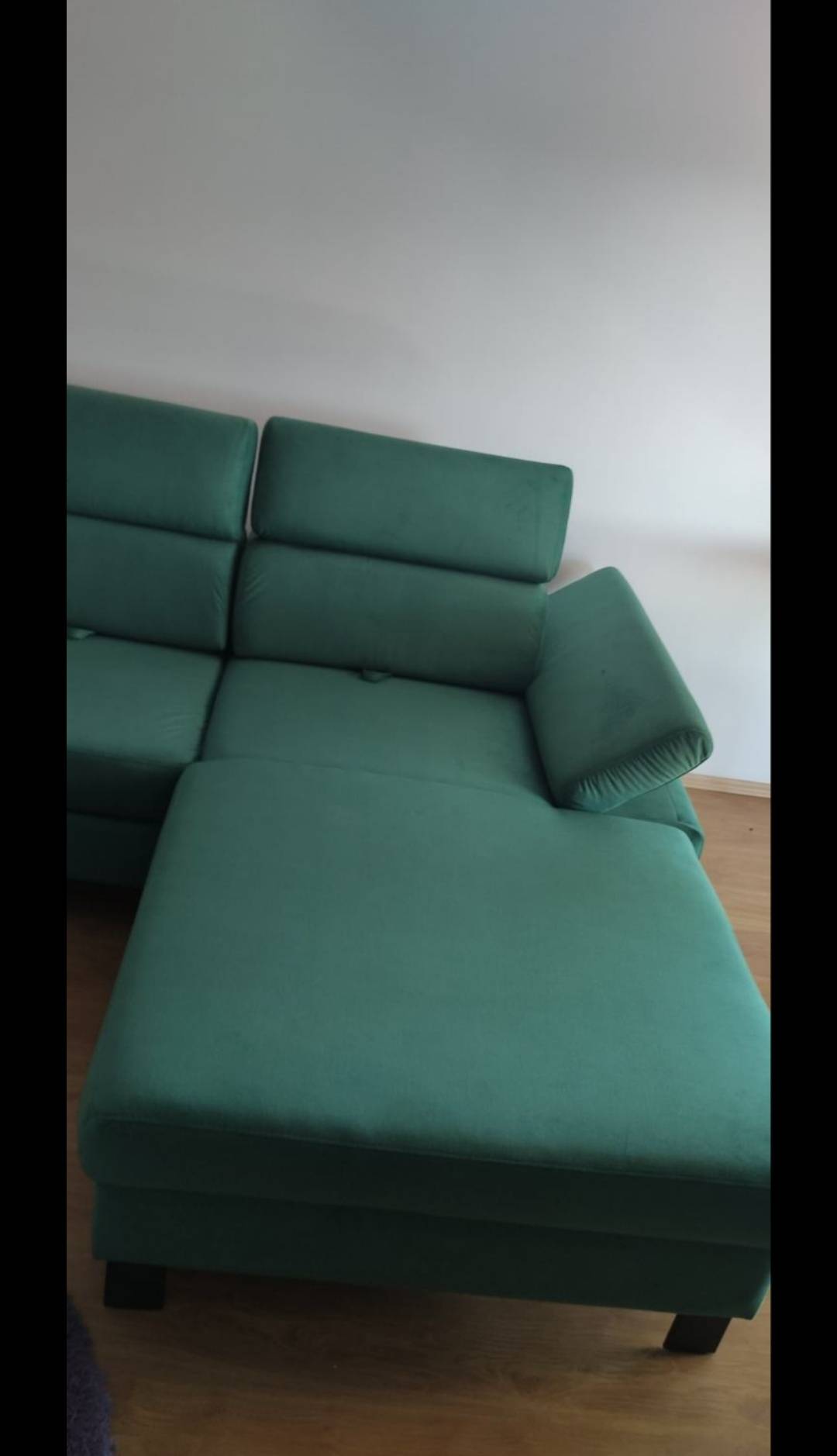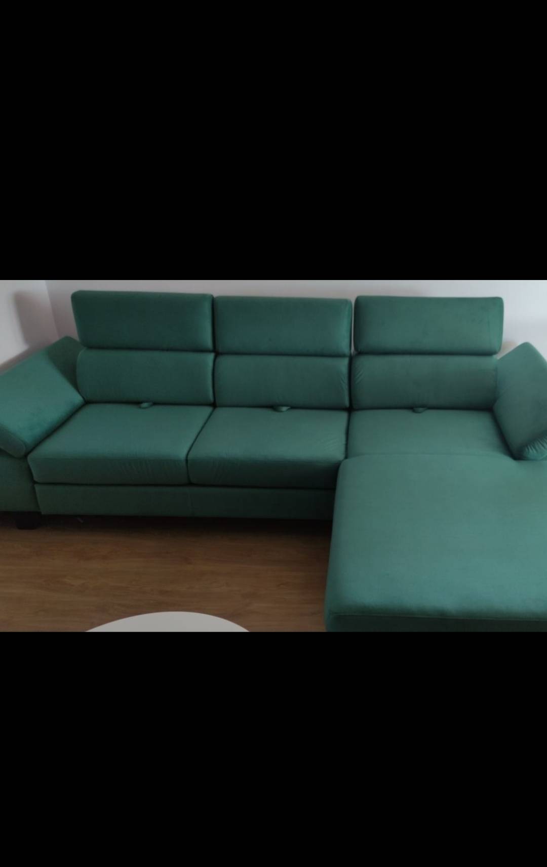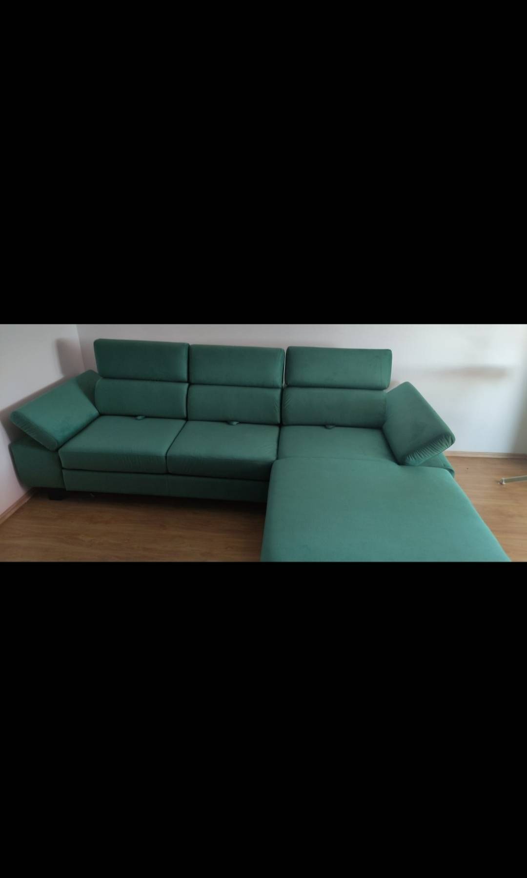 Prodaje se kutna garnitura desni kut, nova samo otpakirana i složena da se vidi kako stoji u prostoru.Ne paše nam kut i to je razlog prodaje.Kutna ima pomične glavonaslone 3 komada,pomične naslone za ruke sa strane,te se sva tri dijela naslona za leđa mogu pomicati prema naprijed dok se sjedi ili ih pomaknuti skroz iza dok se odmara na garnituri.Garnitura također ima izvlačni ležaj.Dimenzije su: