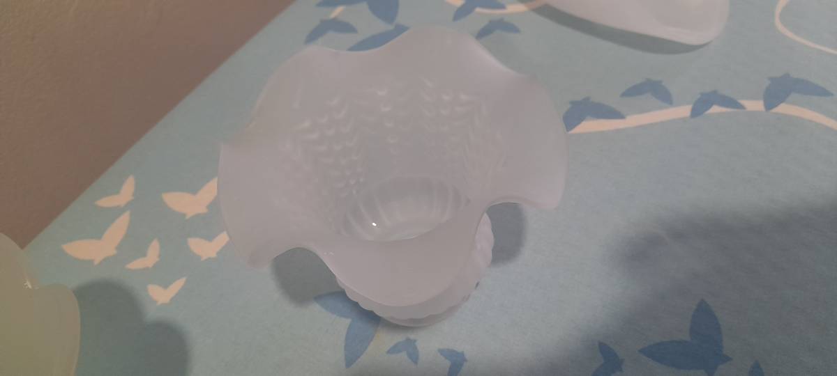 Prodajem staklene ukrasne kugle za lustere. 4 komada u obliku tulipana promjer grla 2.9 cm visina 12 cm,7 komada u obliku rascvjetanog cvijeta promjer grla 4.3 cm , visina 10.5 cm,8 komada u obliku cvijeta sa 6 latica , promjer grla 3,5 cm ,visina 11 cm. 10 eura po komadu , neoštećeno,boja mliječno bijela.