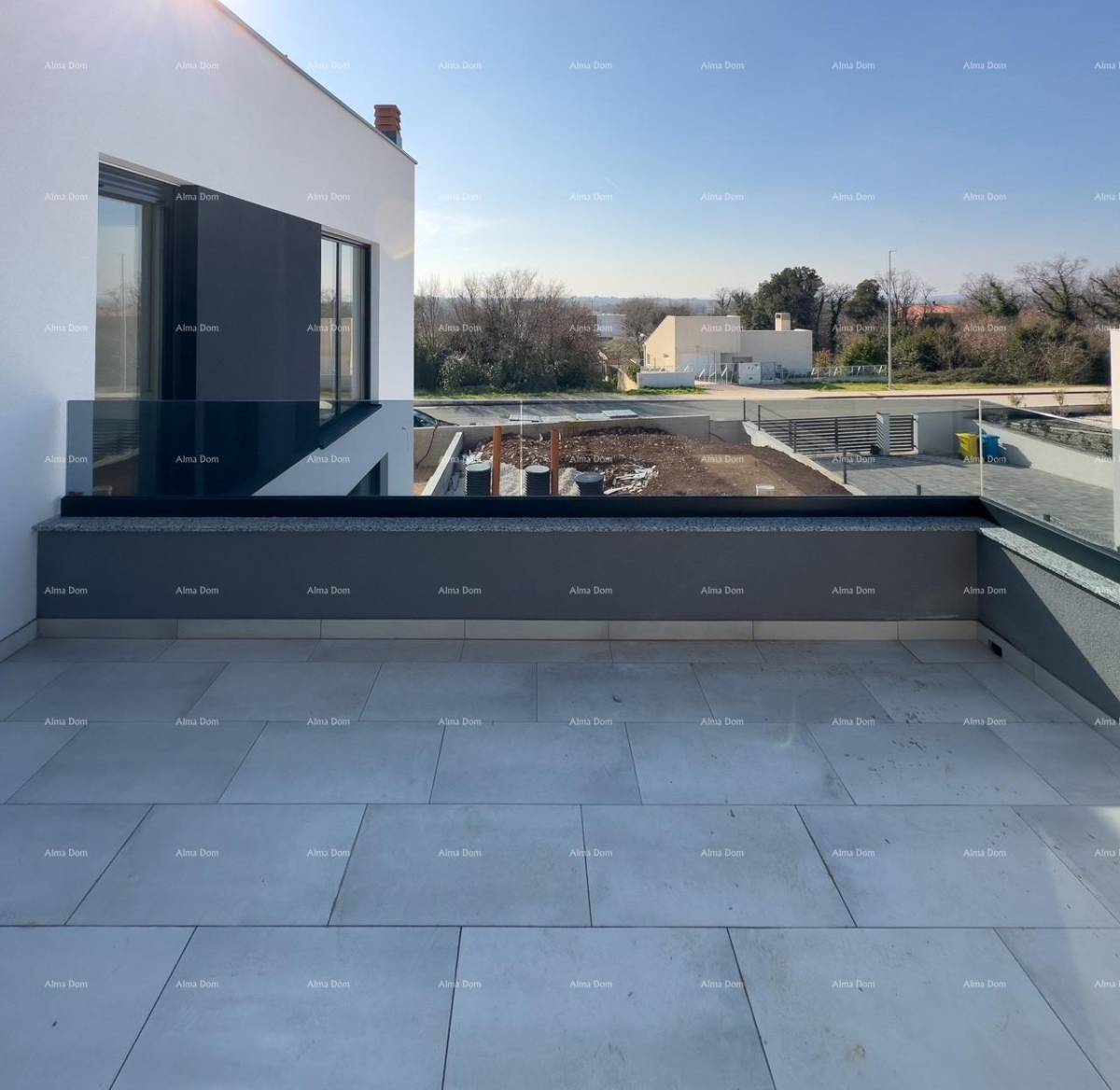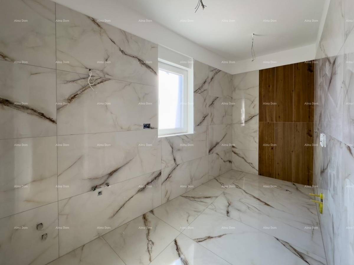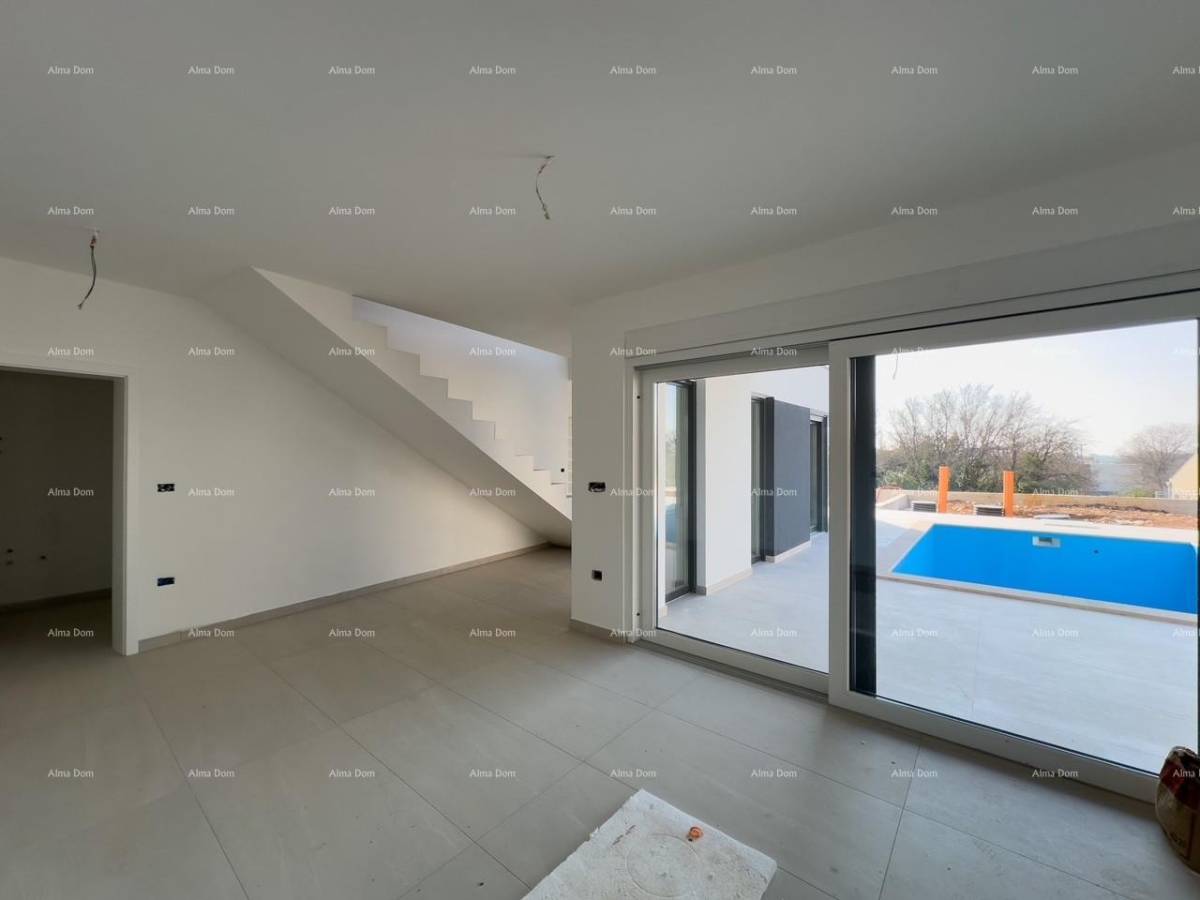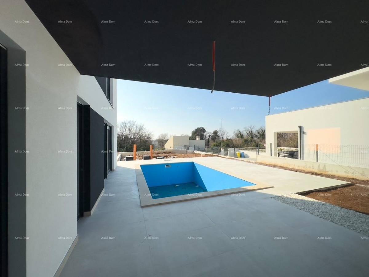 Prodaje se nova kuća sa bazenom od 155 m2. Kuća ima dnevni boravak, kuhinju, blagovaonicu, spavaću sobu i kupaonicu u prizemlju. Na katu se nalaze 2 spavaće sobe, kupaonica te spremište. Iz jedne od spavaćih soba izlazi se na prostranu terasu. Prizemlje vodi do bazena. Okućnica je cca 550 m2.