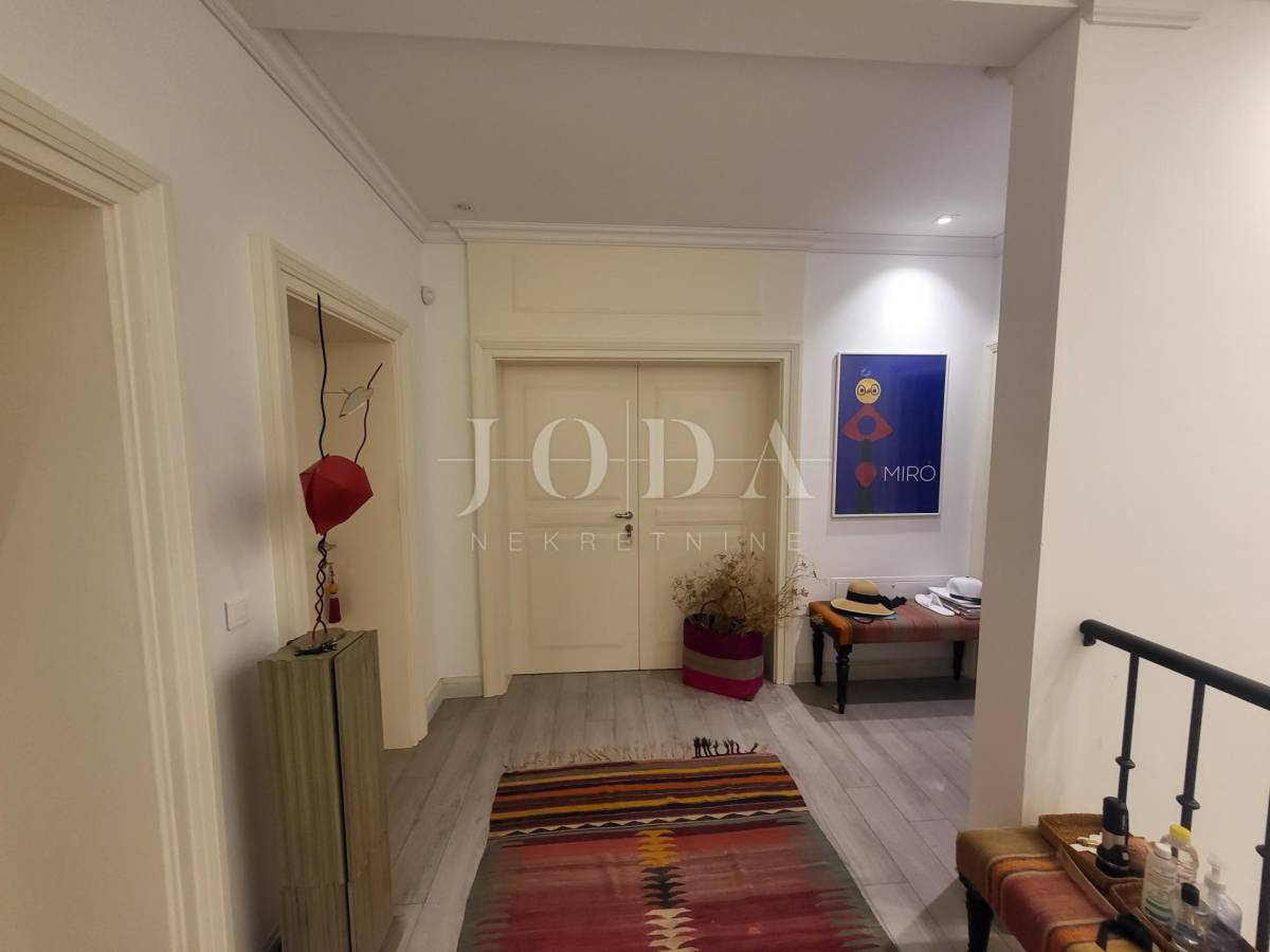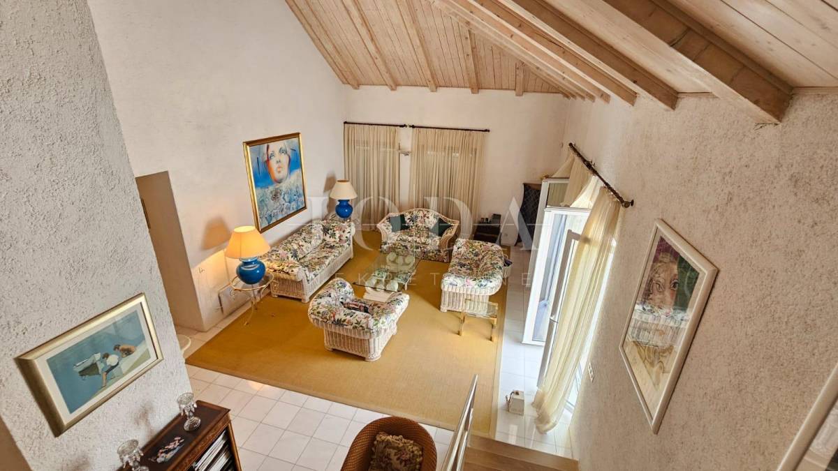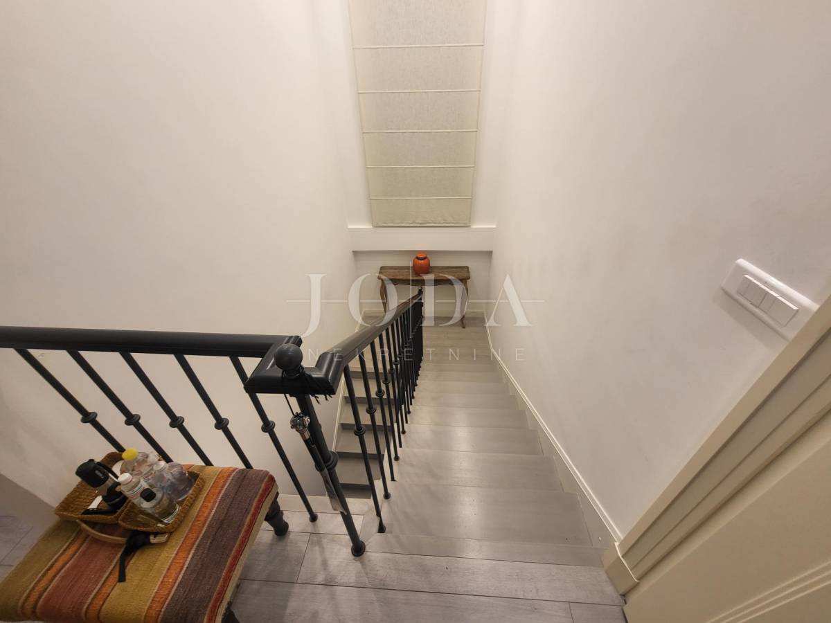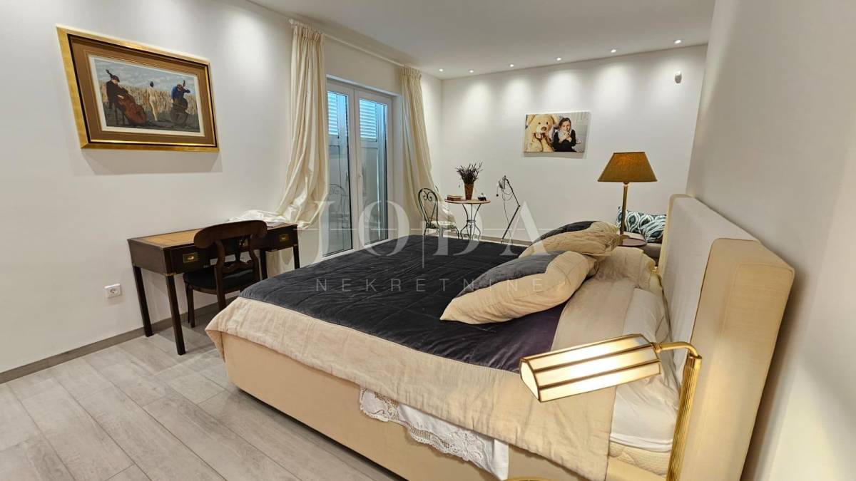 Na prvom katu nalazi se veliki ugodni dnevni boravak, blagavaonica, kuhinja, ostava te tri spavaće sobe od kojih svaka ima svoju kupaonicu. Stepenicama se dolazi na drugi kat na kojem se nalaze još 3 spavaće sobe također svaka od njih ima također svoju kupaonicu. Ovaj raspored prostora omogućuje funkcionalan i ugodan životni prostor, kombinirajući radni prostor, prostor za opuštanje i spavaće sobe s privatnim kupaonicama. Idealno je mjesto za udoban i praktičan život.