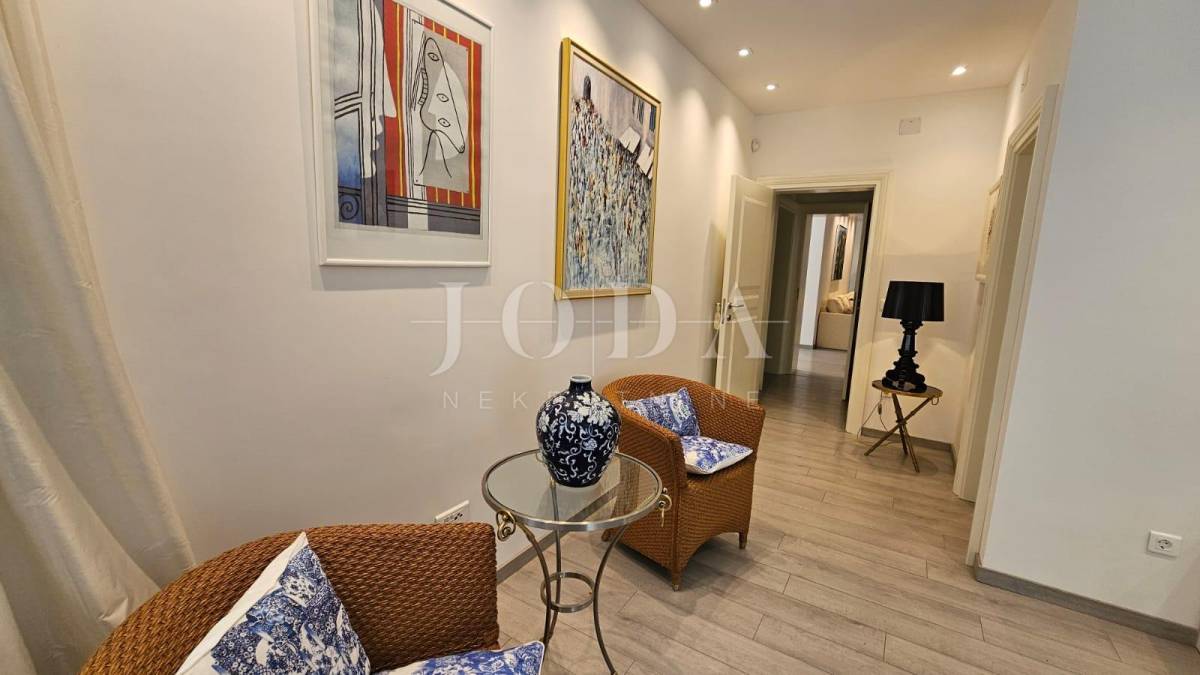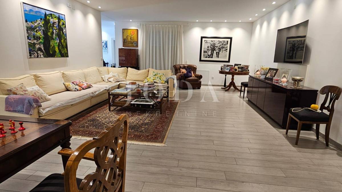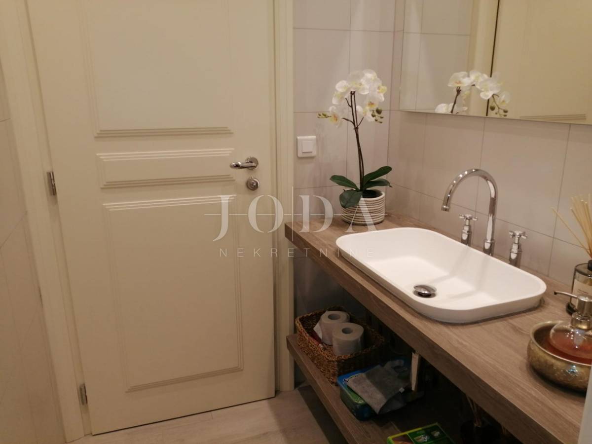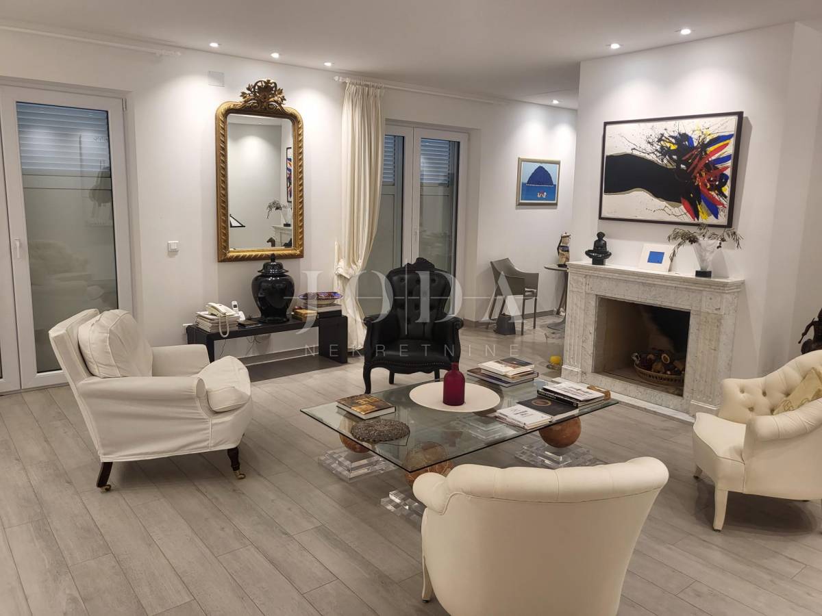 Na prvom katu nalazi se veliki ugodni dnevni boravak, blagavaonica, kuhinja, ostava te tri spavaće sobe od kojih svaka ima svoju kupaonicu. Stepenicama se dolazi na drugi kat na kojem se nalaze još 3 spavaće sobe također svaka od njih ima također svoju kupaonicu. Ovaj raspored prostora omogućuje funkcionalan i ugodan životni prostor, kombinirajući radni prostor, prostor za opuštanje i spavaće sobe s privatnim kupaonicama. Idealno je mjesto za udoban i praktičan život.