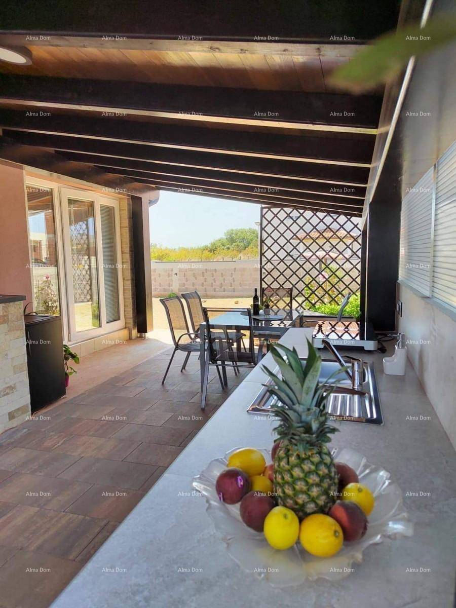 Sastoji se od dnevnog boravka, kuhinje, blagovaonice, tri spavaće sobe, kupatila, zimske terase zatvorene pvc stolarijom te terase sa ljetnjom kuhinjom cca 32m2.