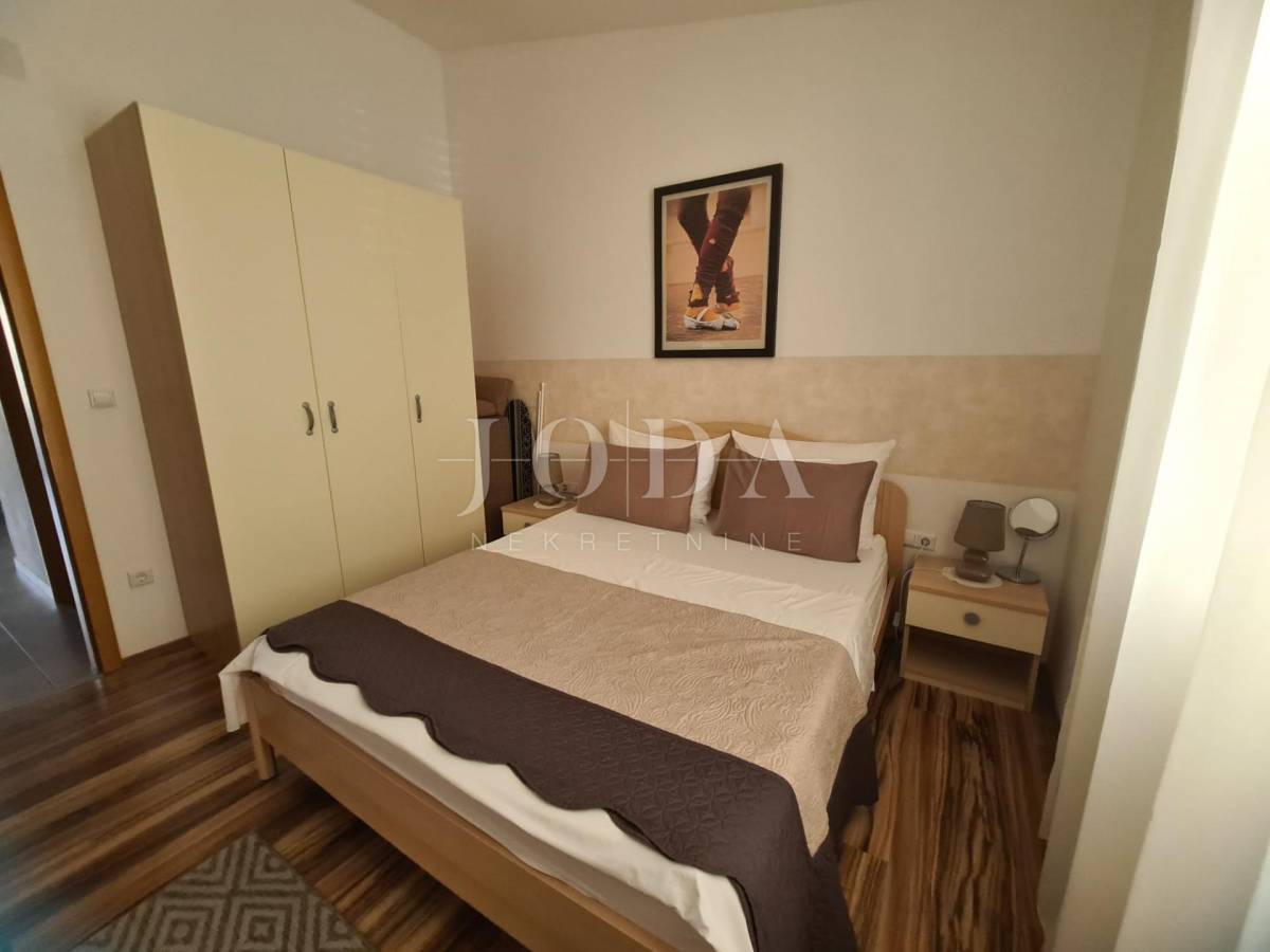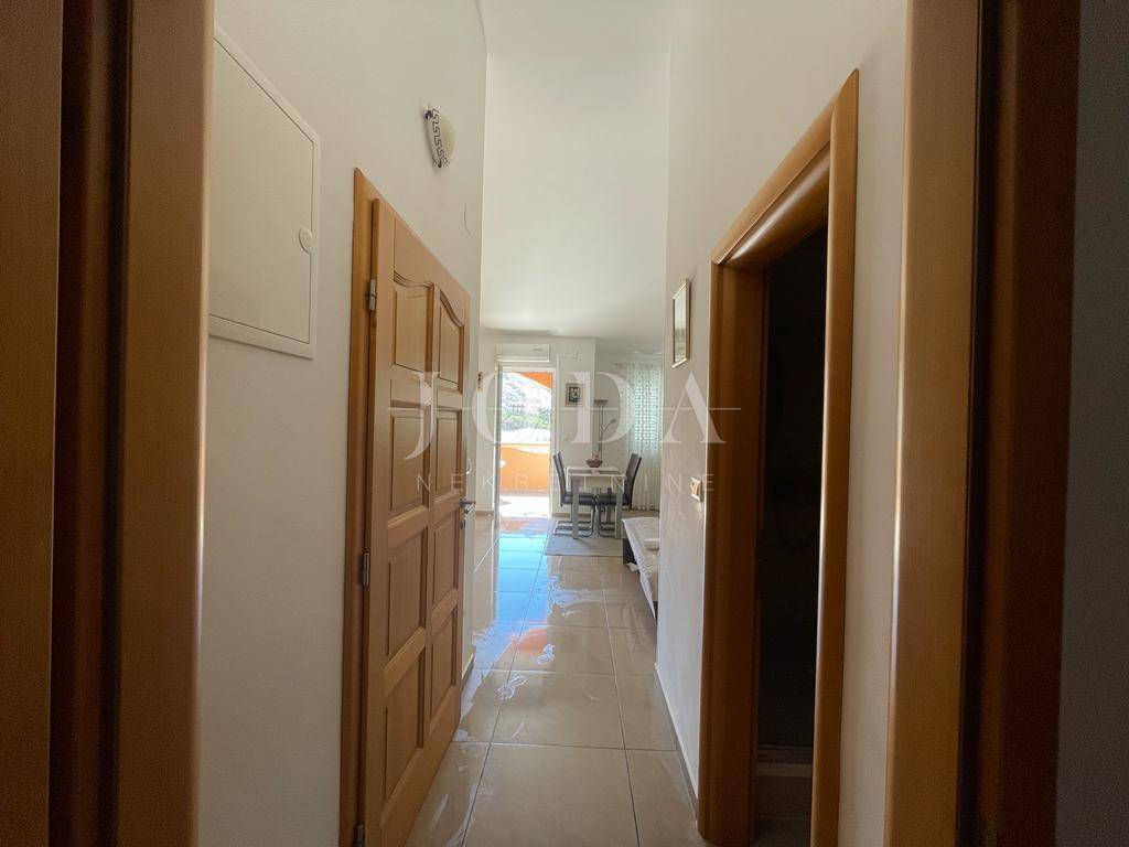 Prostrani balkon sa kojeg se pruža otvoreni pogled na more, blizina šljunčanih plaža i svih sadržaja, restorani, trgovine, kafići.