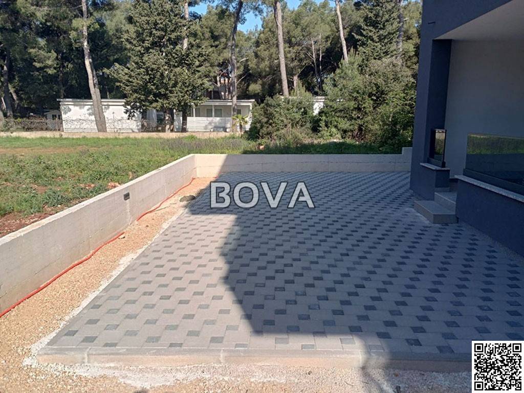 ugrađeni materijali i oprema: PVC vanjska stolarija, protuprovalna i protupožarna ulazna vrata, podno grijanje u kupaonicama, klimatizacija, dimnjak, hrastov paket, keramika, 10 cm termo izolacija;