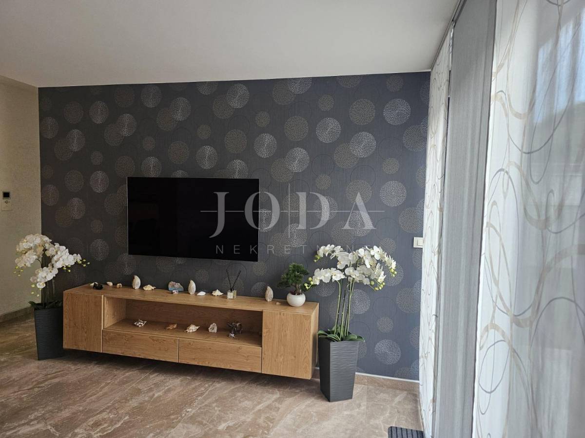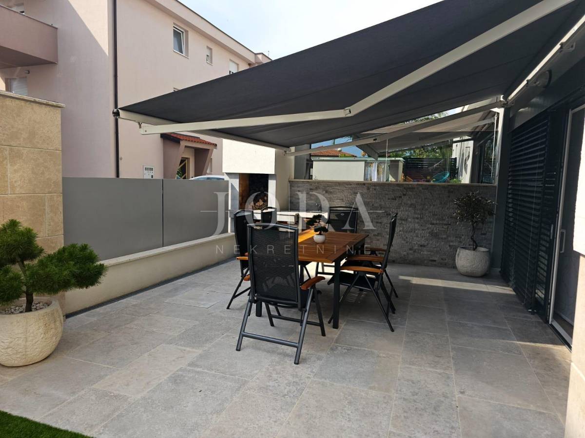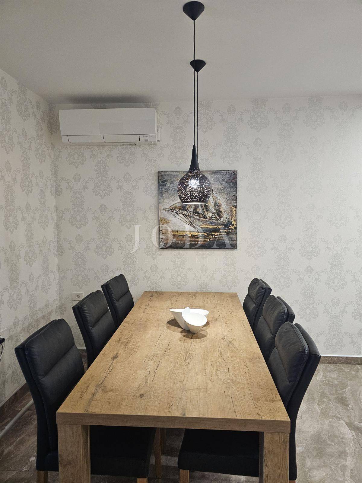 Apartman se nalazi u prizemlju i površine je 74,47 m2. Sastoji se od dnevnog boravka s kuhinjom, hodnika, spremišta, kupaonice, dvije spavaće sobe te loggie. Ima odvojen vanjski ulaz, PVC stolariju s roletama i dva klima uređaja. Apartmanu pripada uređena okućnica površine 54 m2 i jedno parkirno mjesto. U potpunosti je opremljen i namješten te se takav i prodaje. Nalazi se na odličnom djelu Njivica, samo 150 metara od plaže i mora!