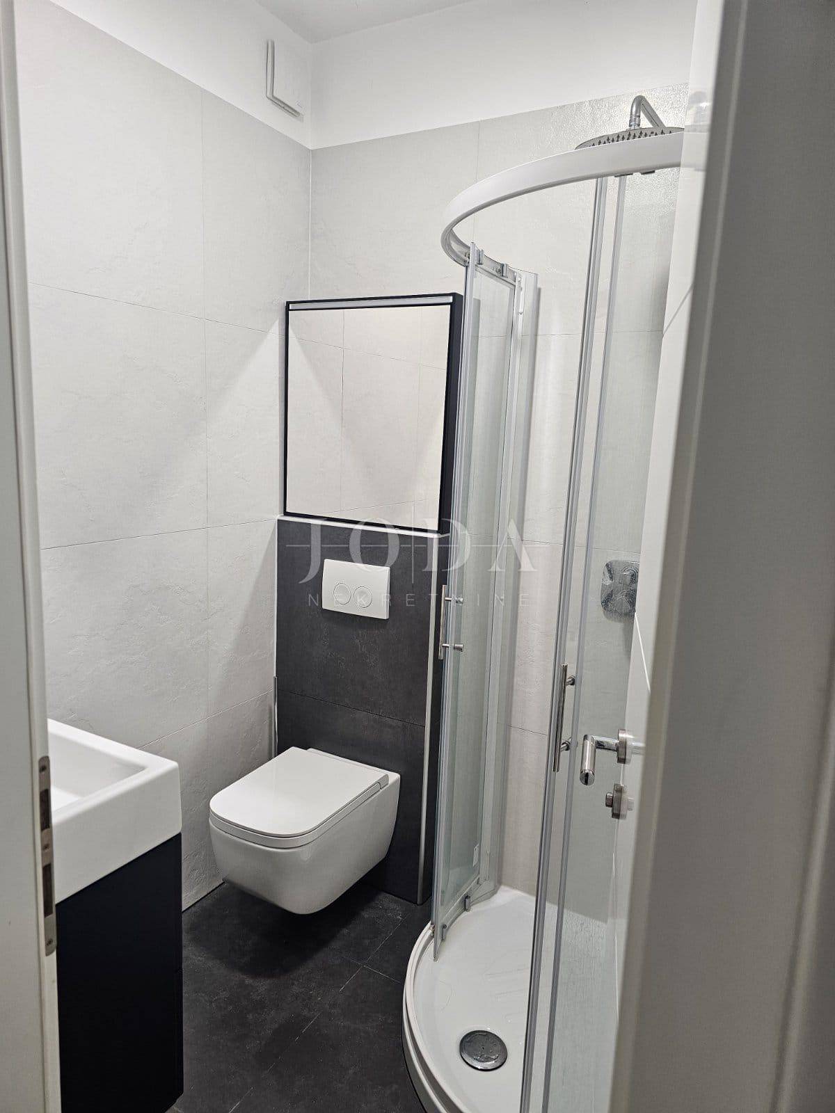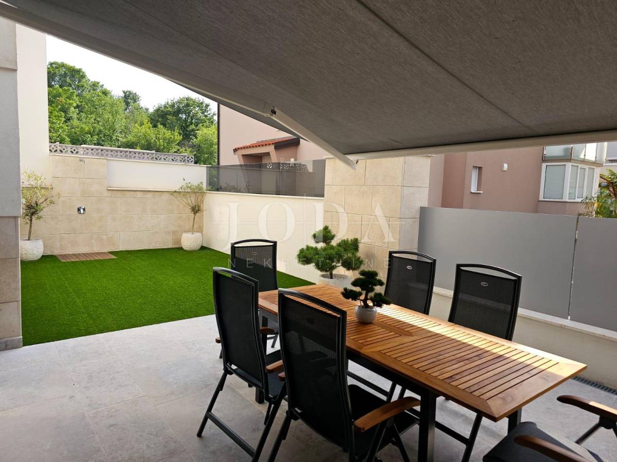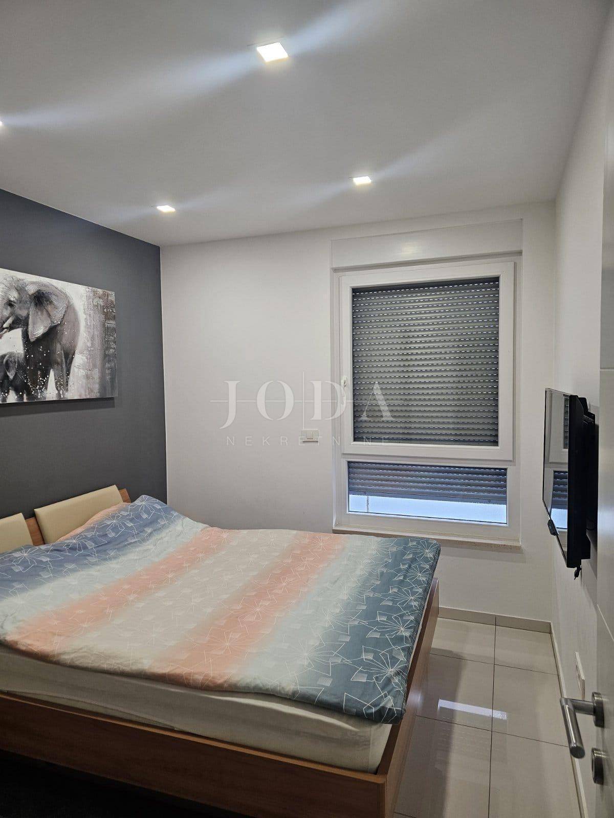 Apartman se nalazi u prizemlju i površine je 74,47 m2. Sastoji se od dnevnog boravka s kuhinjom, hodnika, spremišta, kupaonice, dvije spavaće sobe te loggie. Ima odvojen vanjski ulaz, PVC stolariju s roletama i dva klima uređaja. Apartmanu pripada uređena okućnica površine 54 m2 i jedno parkirno mjesto. U potpunosti je opremljen i namješten te se takav i prodaje. Nalazi se na odličnom djelu Njivica, samo 150 metara od plaže i mora!