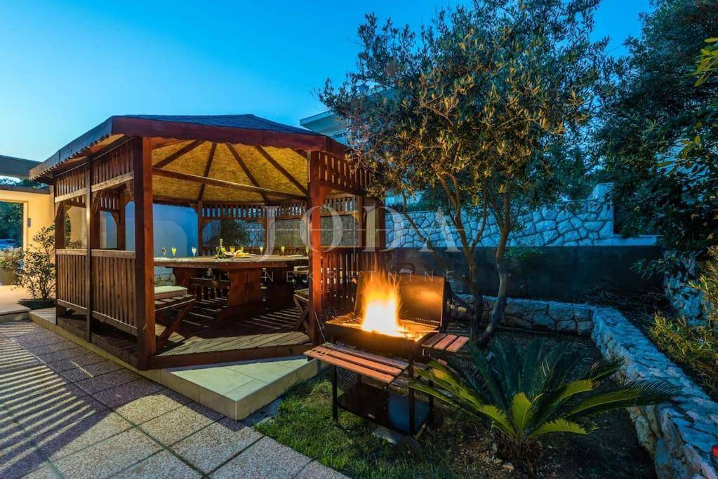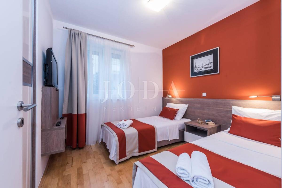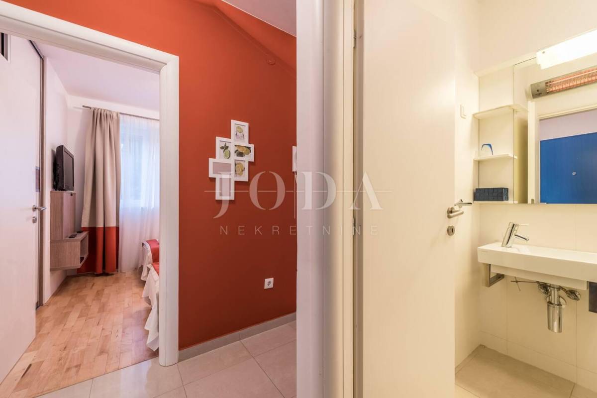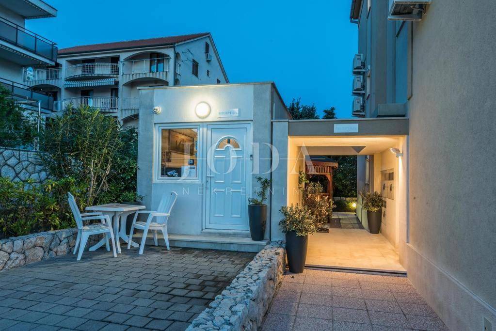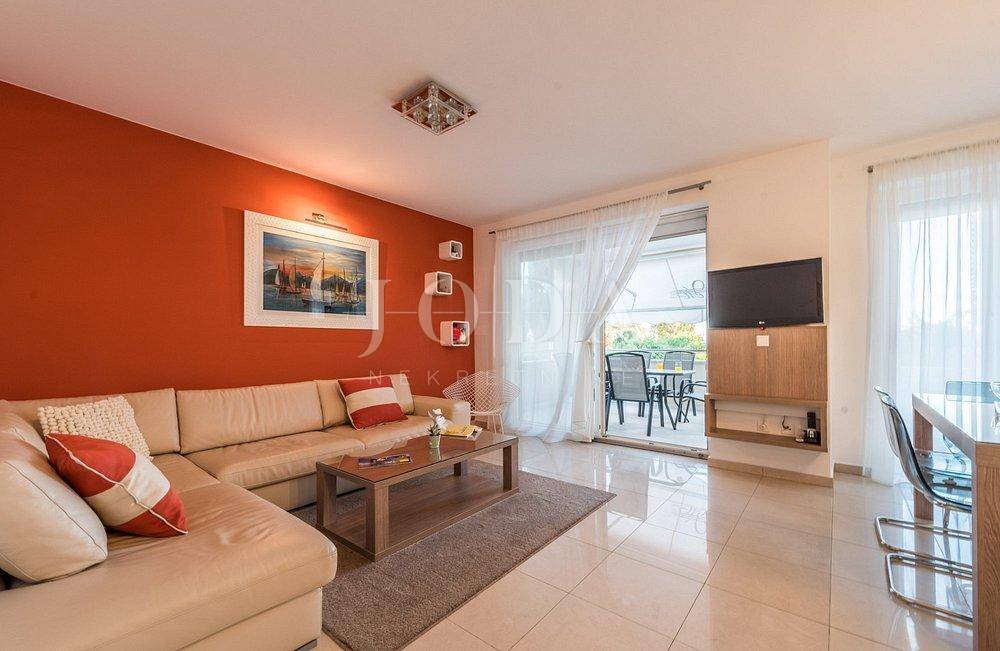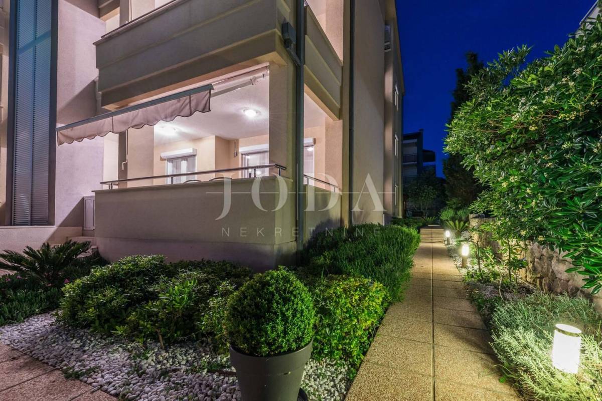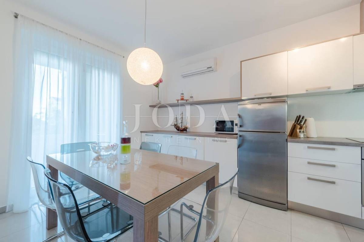 Apartman sa vlastitim prilazom prema plaži,unutar koje okućnice je smješten grijani bazen,sjenica za 10 osoba sa grillom.