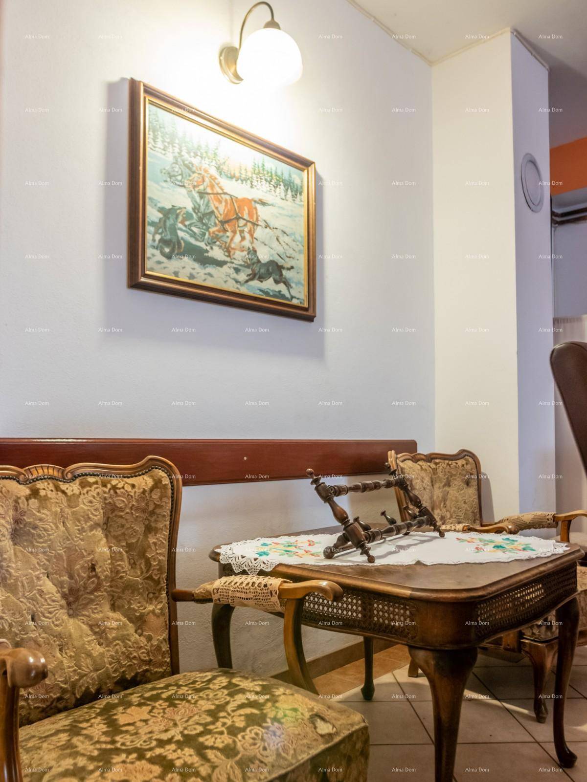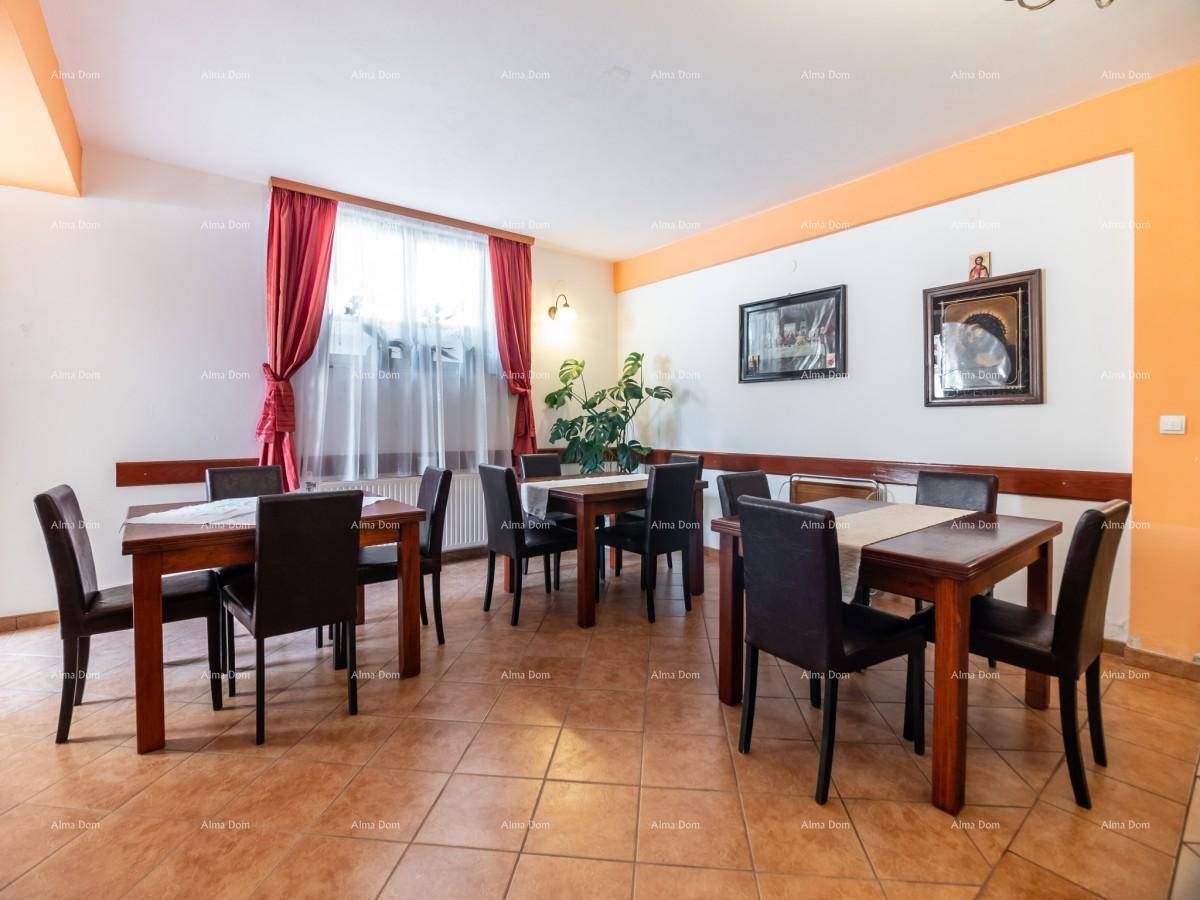 Prizemne prostorije su restoran 100 m2 za 30 osoba sa kuhinjom, malom recepcijom te salom za goste.