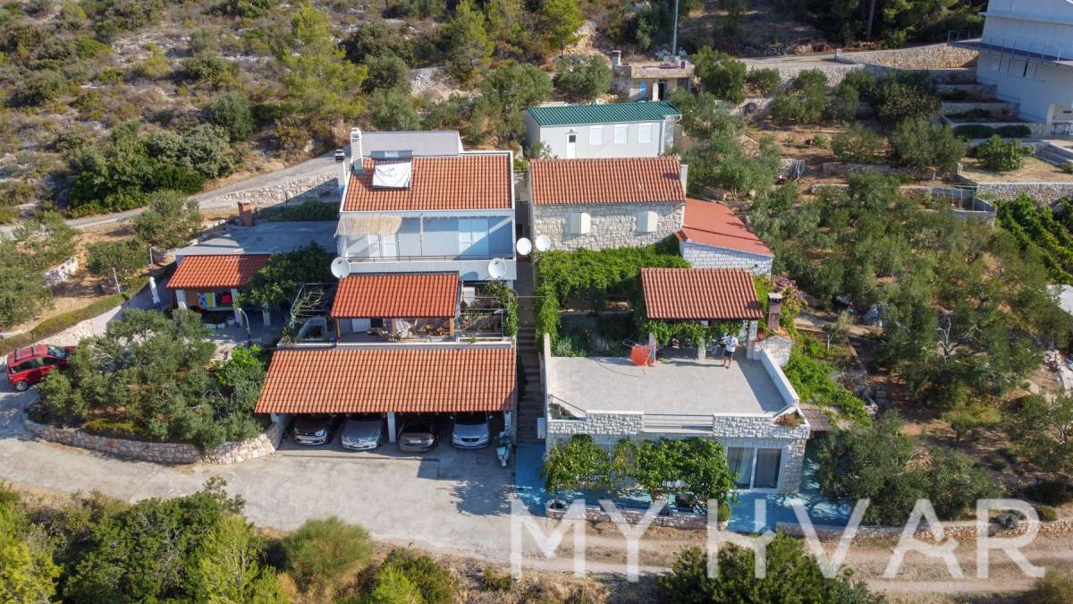 Dodatno, prateće građevinsko zemljište dopušta mogućnost izgradnje još jedne kuće uz imanje na istoku, maksimizirajući potencijal i buduće prilike. Smještena samo 100 metara od mora slikovitom pješačkom cestom, i s posebnim parkingom za svaku jedinicu, ova nekretnina nudi udobnost i mir.