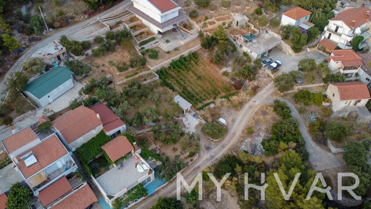 Dodatno, prateće građevinsko zemljište dopušta mogućnost izgradnje još jedne kuće uz imanje na istoku, maksimizirajući potencijal i buduće prilike. Smještena samo 100 metara od mora slikovitom pješačkom cestom, i s posebnim parkingom za svaku jedinicu, ova nekretnina nudi udobnost i mir.