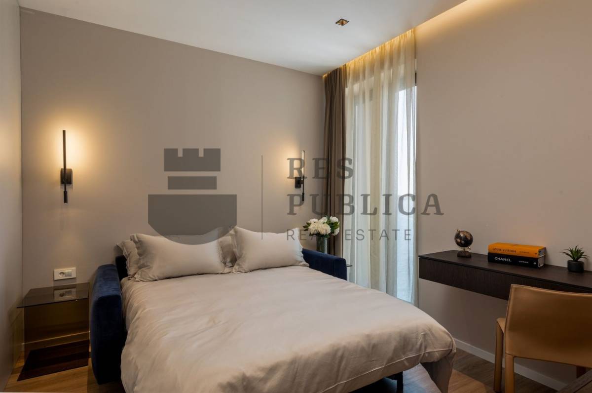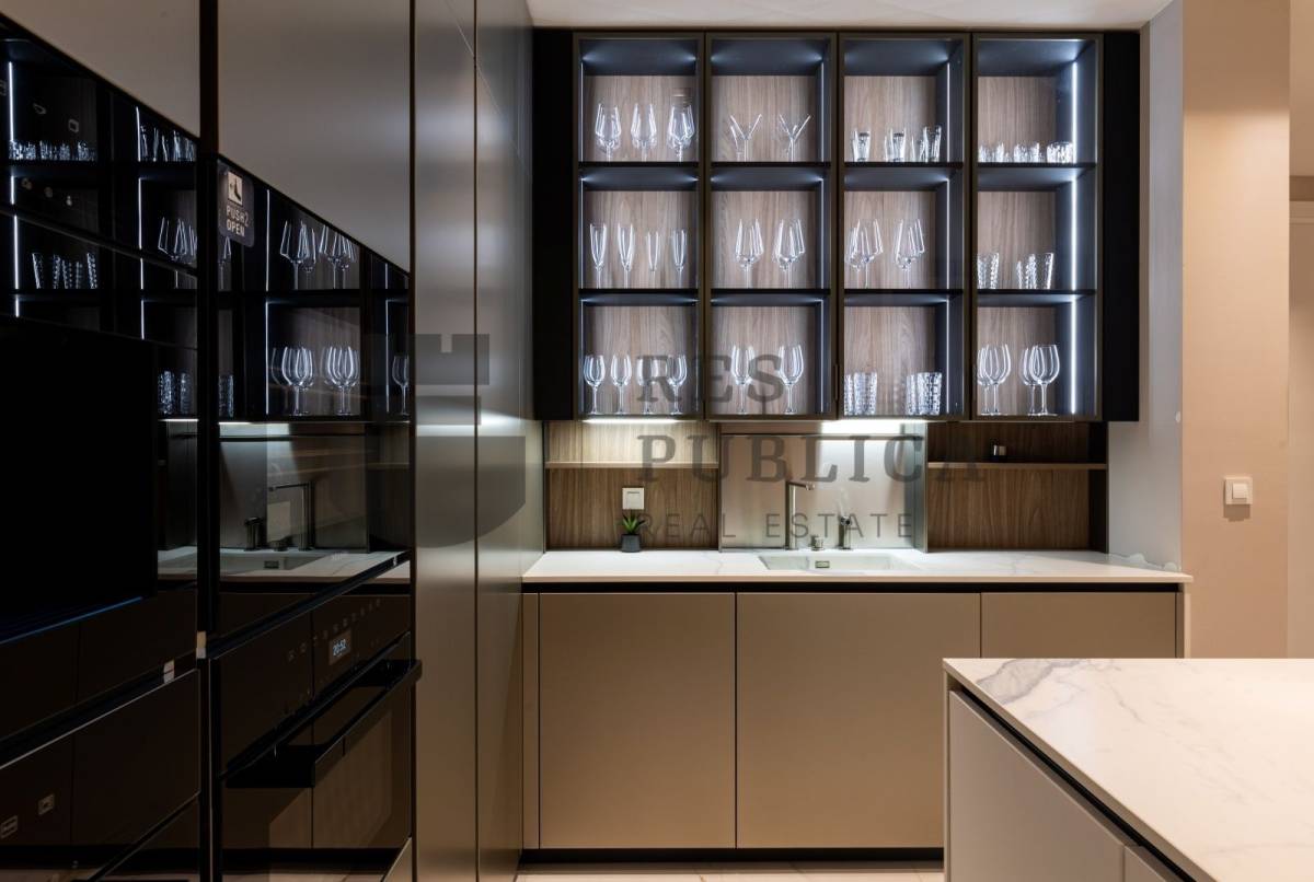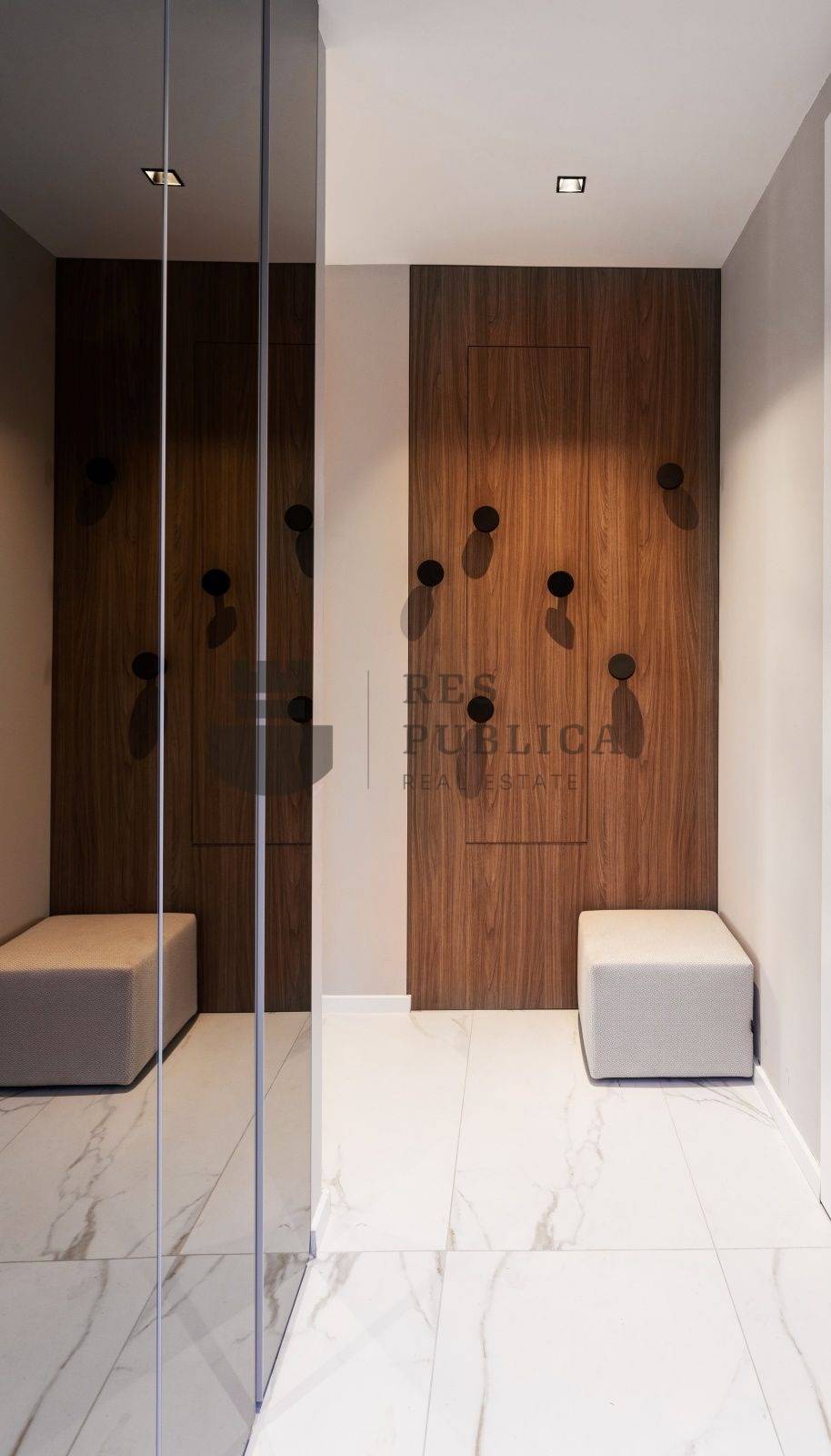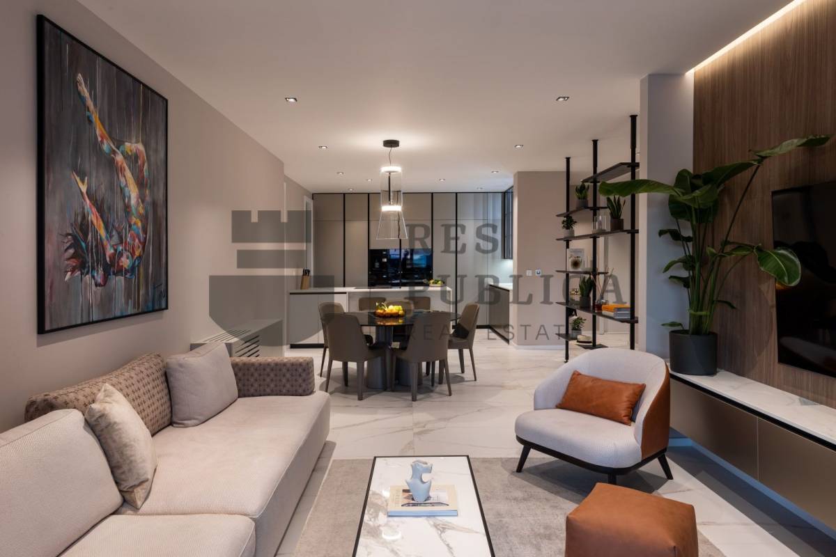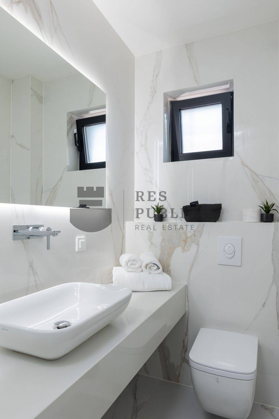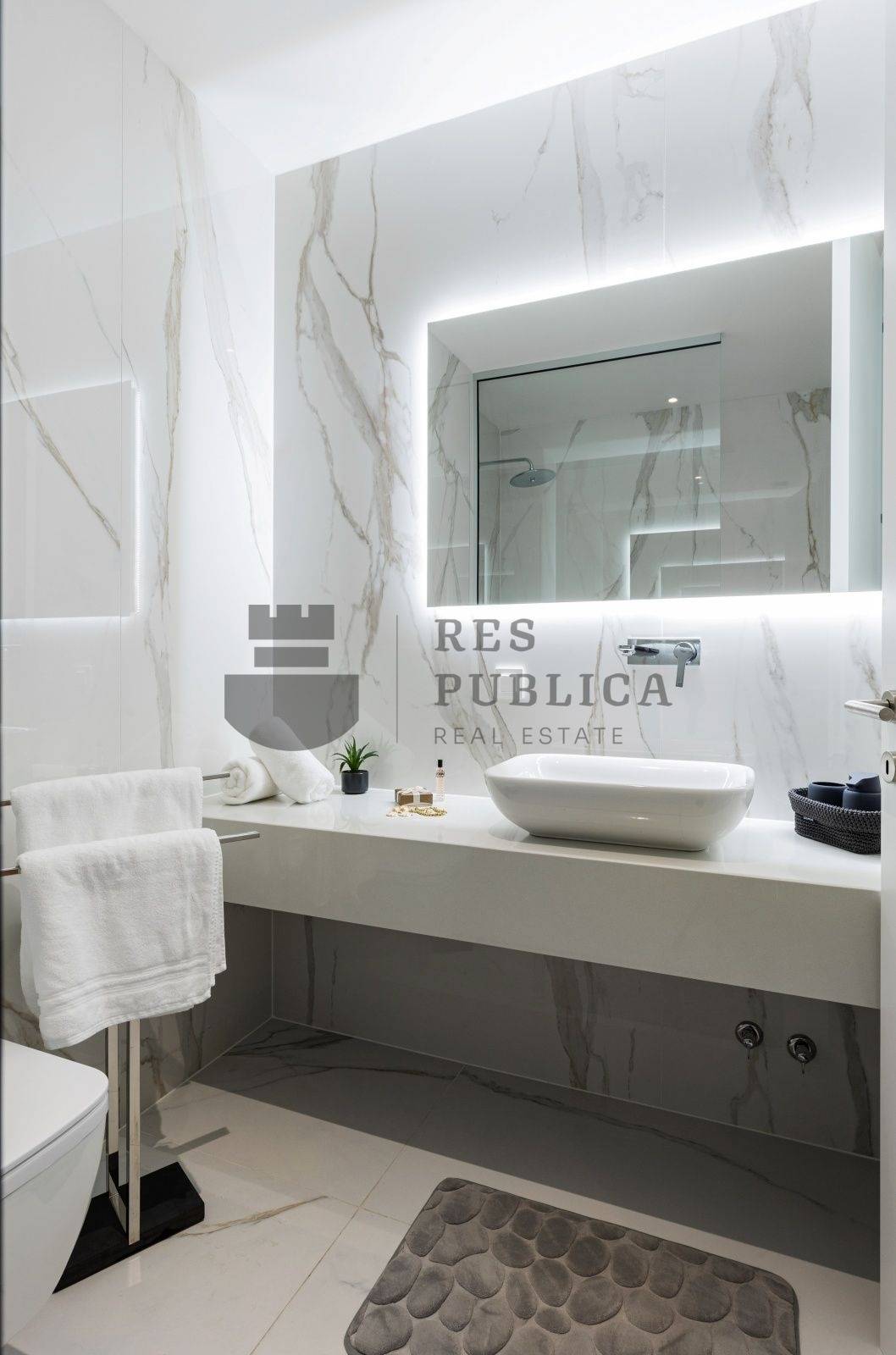 Stan je u potpunosti opremljen i prodaje se kao takav, spreman za useljenje. Njegova pažljivo osmišljena unutrašnjost uključuje tri prostrane sobe, dvije elegantno uređene kupaonice i otvoreni koncept dnevnog boravka koji se savršeno povezuje s blagovaonicom i kuhinjom. Svaki detalj uređenja naglašava osjećaj modernog, prozračnog i ugodnog doma.