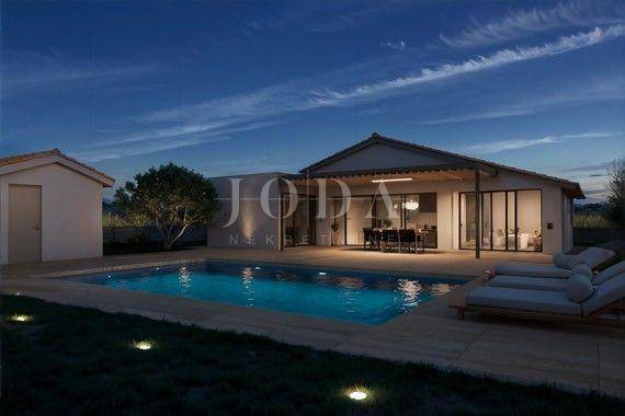 Prodaje se atraktivno građevinsko zemljište sa pripadajućom građevinskom dozvolom za izgradnju montažne kuće sa bazenom i pomoćnim objektom.