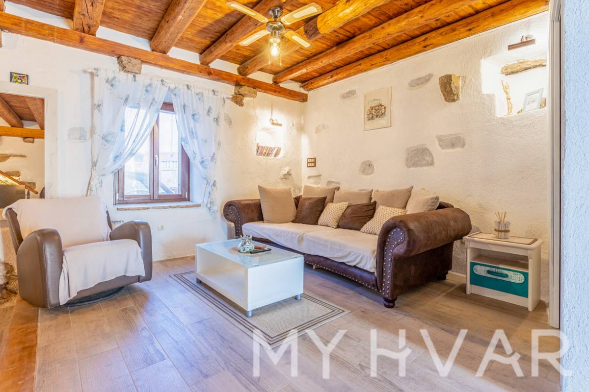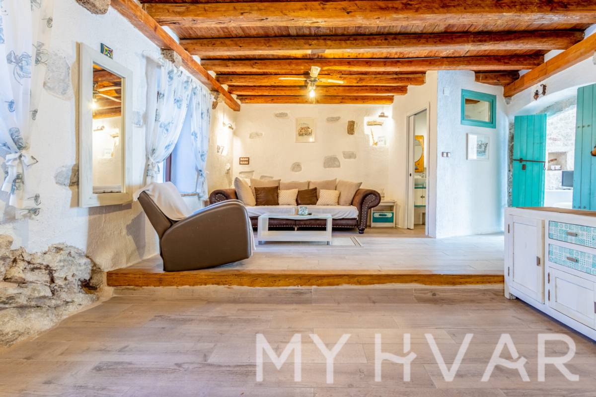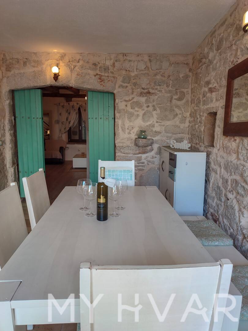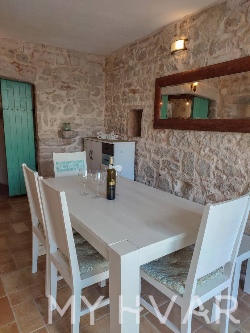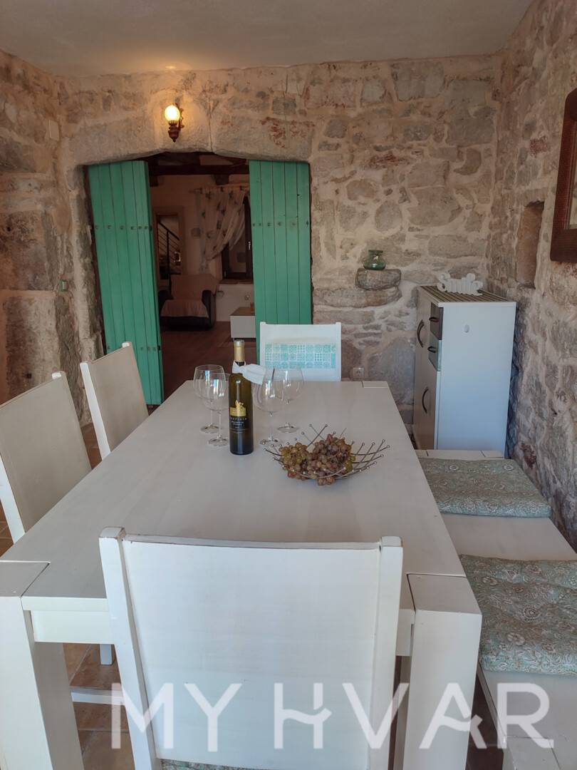 Šarmantna dalmatinska kamena kuća s privatnim bazenom, smještena u mirnom selu Vrbanj u unutrašnjosti otoka Hvara, svega kratke vožnje od Starog Grada i Jelse. Uređena u kombinaciji tradicionalnih kamenih detalja i modernog dizajna, vila nudi savršenu ravnotežu između autentičnog ugođaja i suvremene udobnosti.