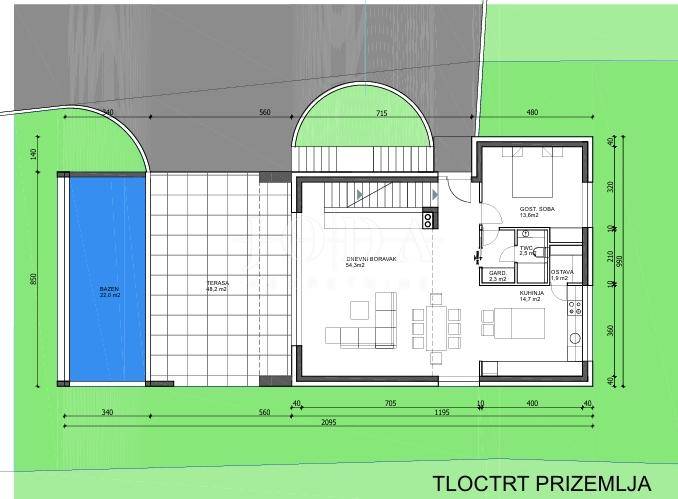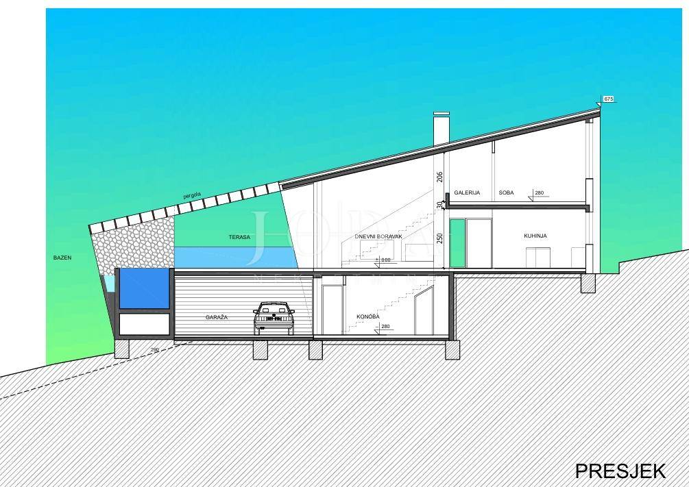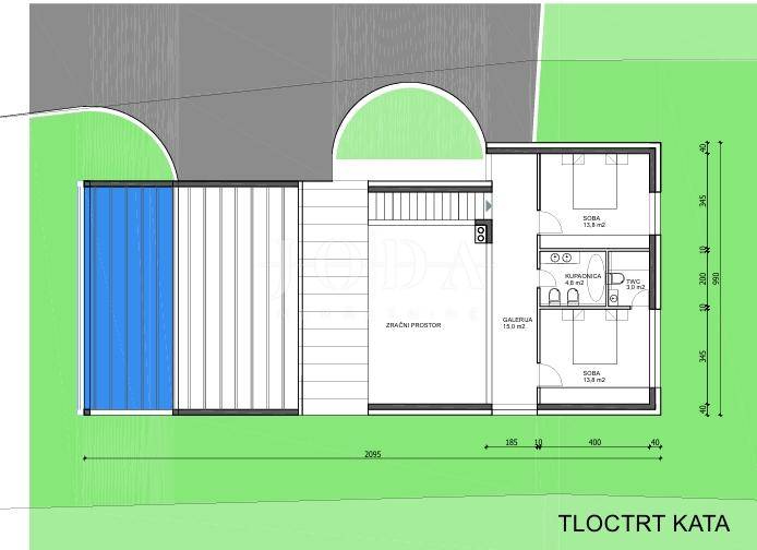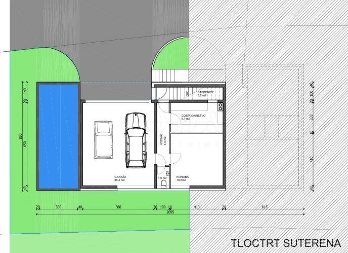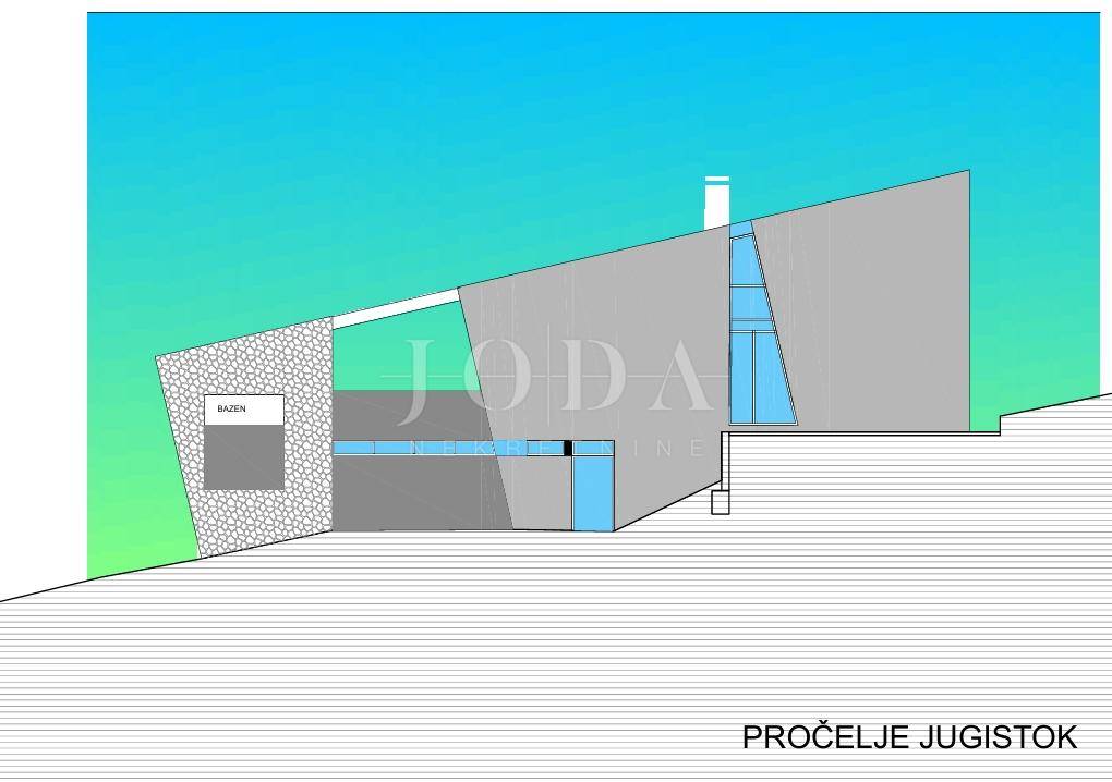 Prodajemo građevinsko zemljiste sa idejnim projektom za kucu sa bazenom u mjestu Bakarcu.