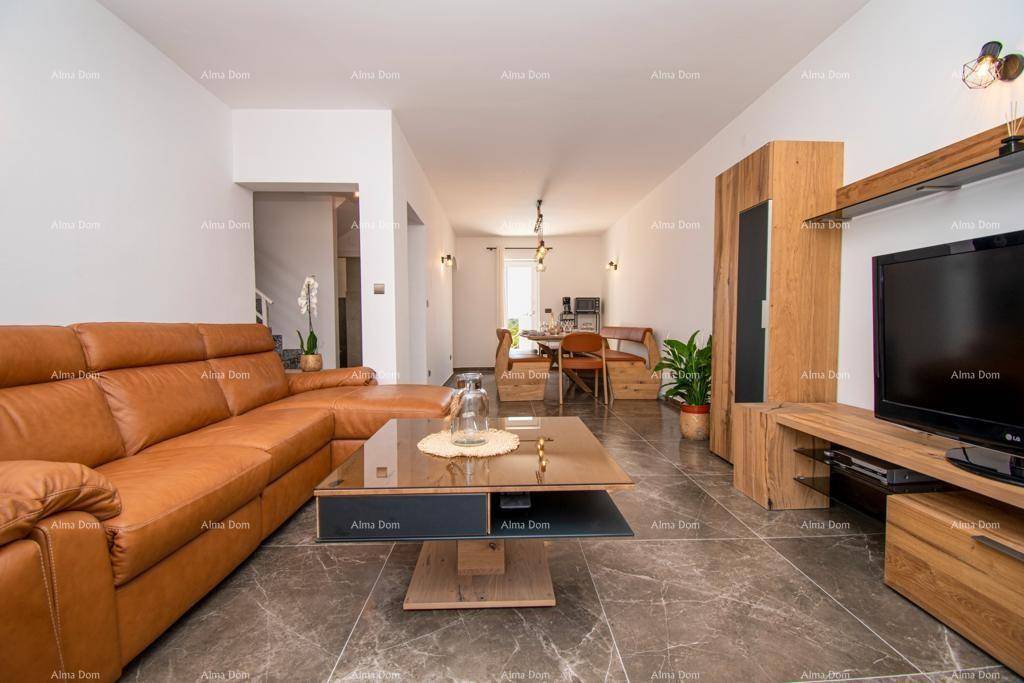 Kuća zadnja u nizu , ima 300m2 stambene površine, na parceli od 340m2. Kuća se sastoji od 3 apartmana: dvoetažni apartman, površine cca 120m2, ima 3 spavaće sobe, 2 kupatila i kuhinja i 2 odvojena manjih apartmana sa jednom spavaćom sobom kuhinjom sa dnevnim boravkom i kupaonicom, jedan u prizemlju i jedan na 1.katu.