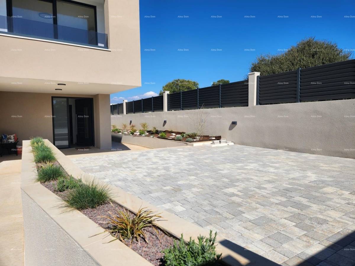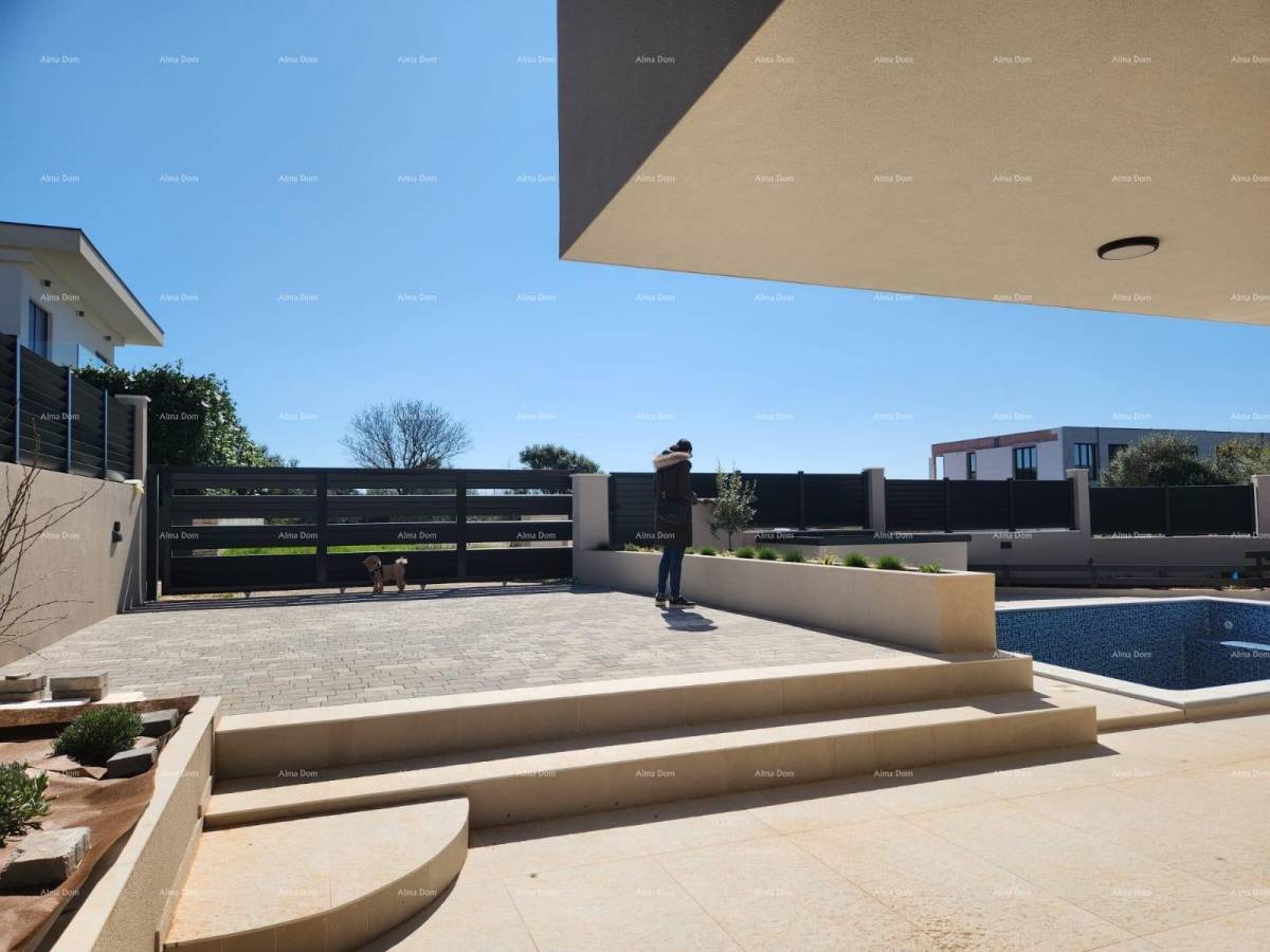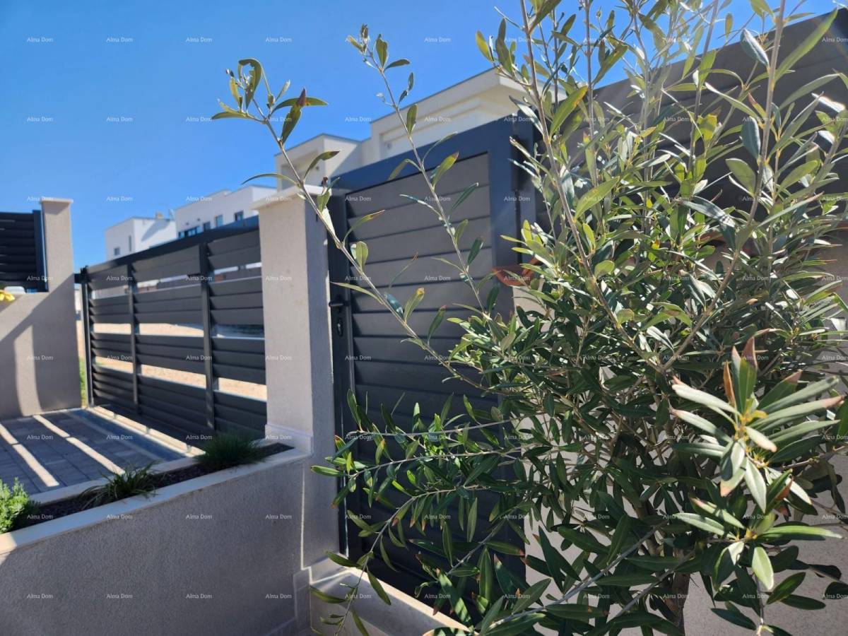 Kuća je moderno ograđena zidanom i aluminijskom antracit ogradom s kliznom kapijom