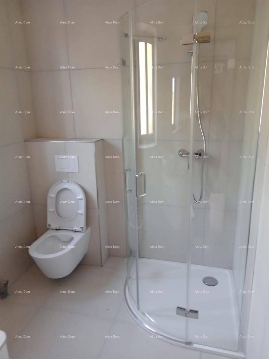 Prizemlje ima mali wc, ostava, kuhinju blagovaonicom i dnevnim boravkom i jednom spavaćom sobom. Na katu je velika kupaonica, tri spavaće sobe od koje jedna ima svoje kupatilo i veliku terasu.