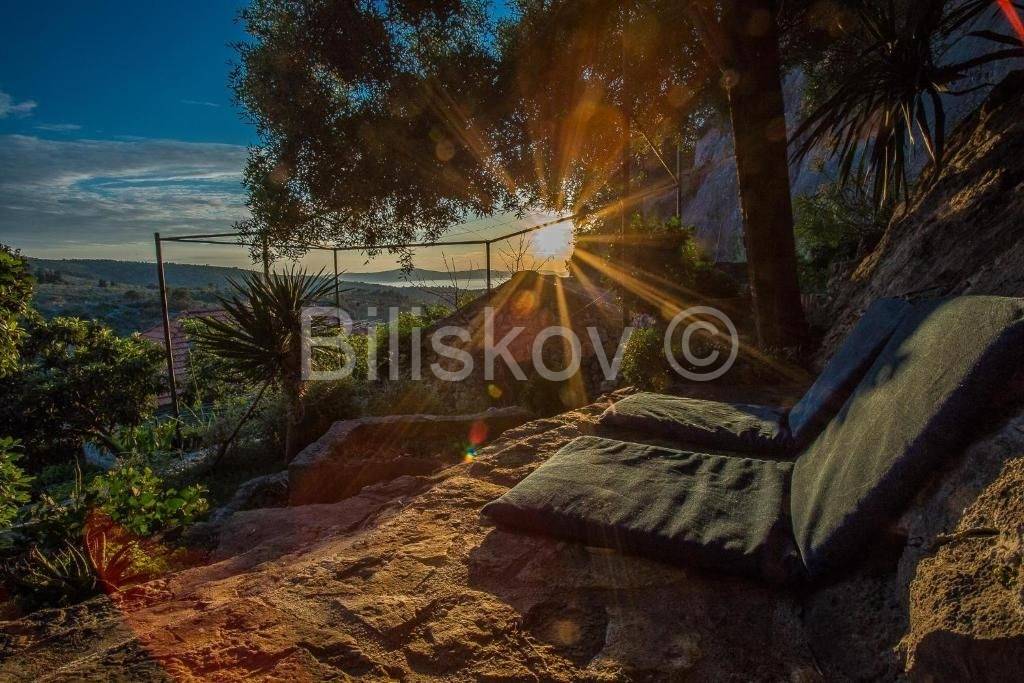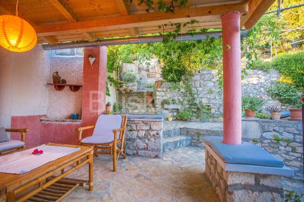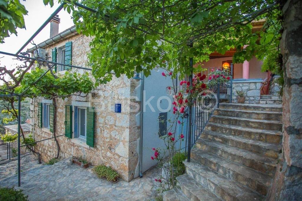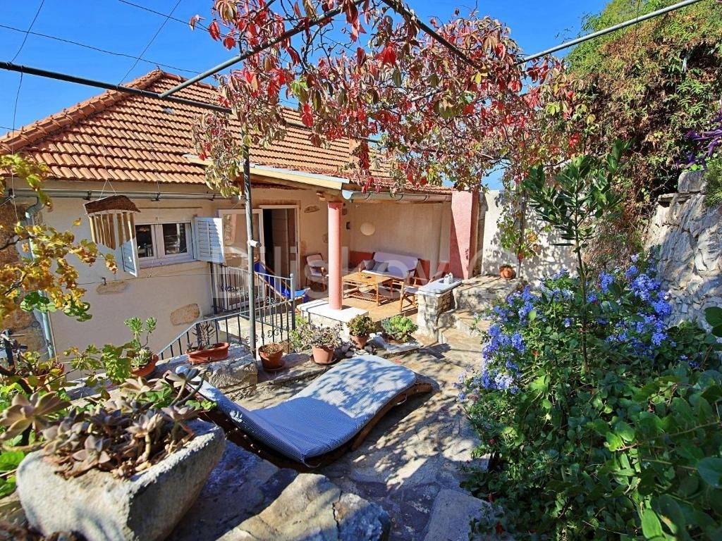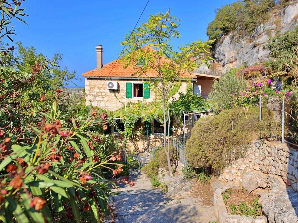 Brač, Bobovišća, dvojna kamena renovirana kuća stambene površine 105 m2, konoba od cca 35 m2, sa prekrasnom okućnicom i panoramskim pogledom na more.