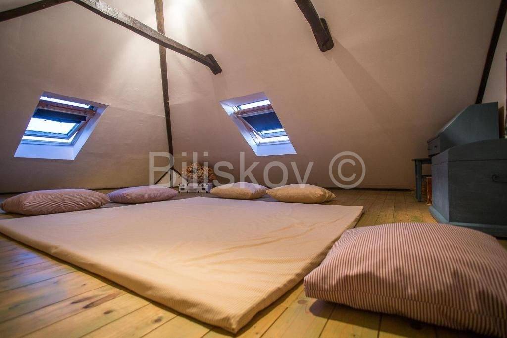 Drvenim stepenicama ide se na gornju etažu gdje se nalaze kuhinja, blagovaonica i dnevni boravak.