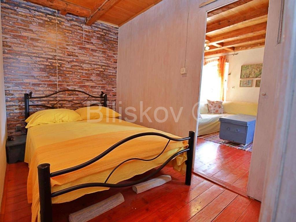 Autohtona, renovirana po modernim kriterijima, ova kamena kuća predstavlja raritet na tržištu!Na etaži prizemlja nalazi se preuređena konoba koja ima poseban vanjski ulaz. Uz manje zahvate se može preurediti u apartman. Ista se inače koristi u ljetnom periodu za stanovanje (wc, tuš, manja kuhinja).Na prvoj etaži nalazi se kupatilo, soba (manja), soba veća sa dnevnim dijelom.