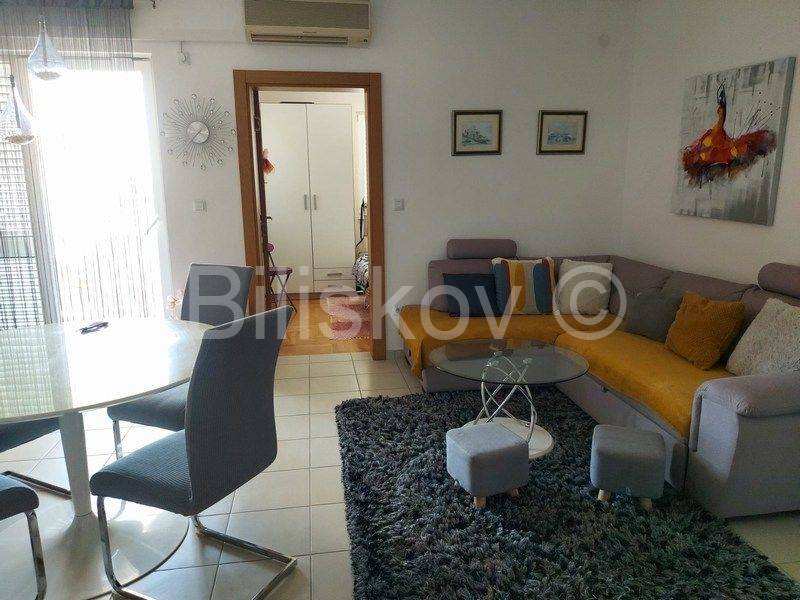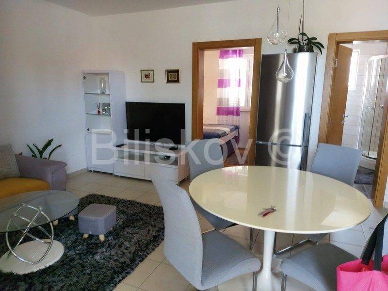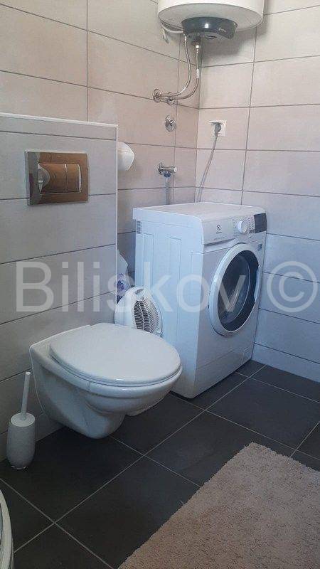 Stanu pripada i jedno parkirno mjesto u podrumu garaže od 11,48 m2 (etažirano zajedno sa stanom). Zgrada je izgrađena 2011.godine, stan je održavan i u originalnom stanju. Nalazi se na mirnoj lokaciji u blizini plaže i šetnice,(cca 300 m) a par minuta šetnje je udaljen od dućana, škole, autobusne stanice.