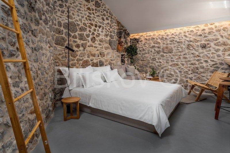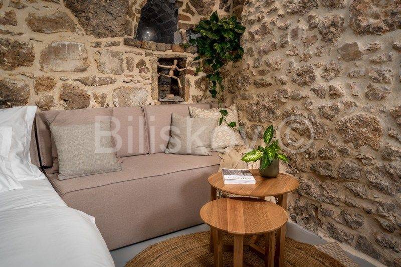Na južnoj strani idiličnog otoka Brača, smještena je skladno renovirana kamena kuća sa 9 apartmana na tri etaže.