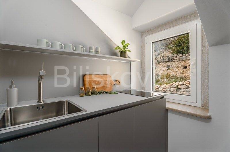 Apartman je zajedno sa cijelom kućom kompletno renoviran 2023. godine i u uspješnom i uhodanom turističkom je najmu. Sve apartmanske jedinice su moderno uređene, uklopljene u autohtonu arhitekturu i moguće ih je koristiti tijekom cijele godine. Odlike interijera su pametni dizajn i vrhunska završna obrada.