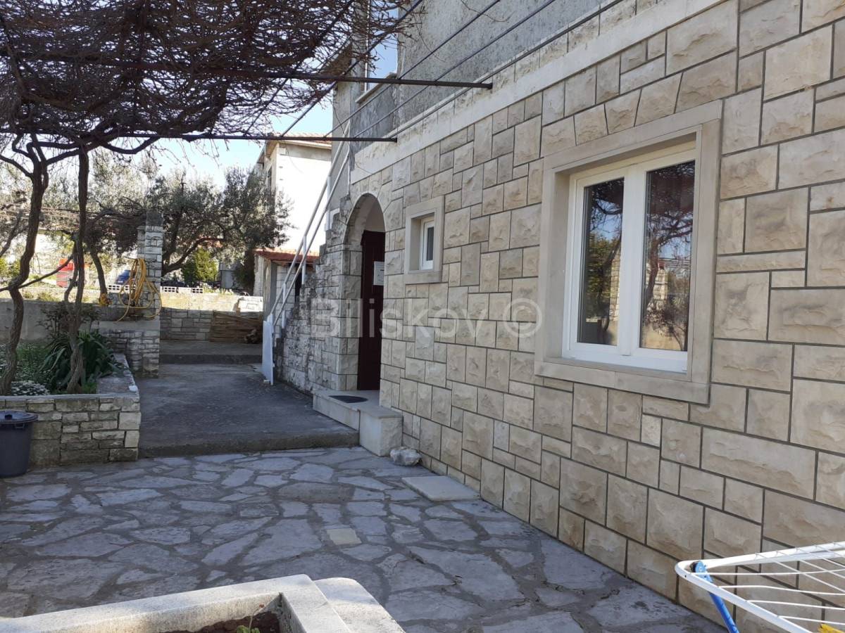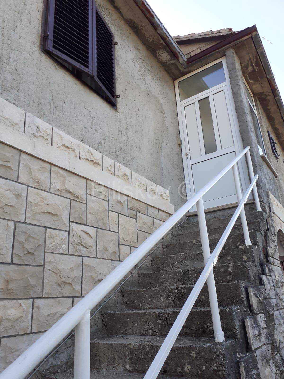 Na prvom katu se nalazi stan koji se sastoji od velikog dnevnog boravka u sklopu blagovaone i kuhinje, 2 spavaće sobe, kupaonicae, hodnika i terase (nije renoviran).