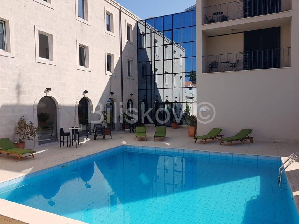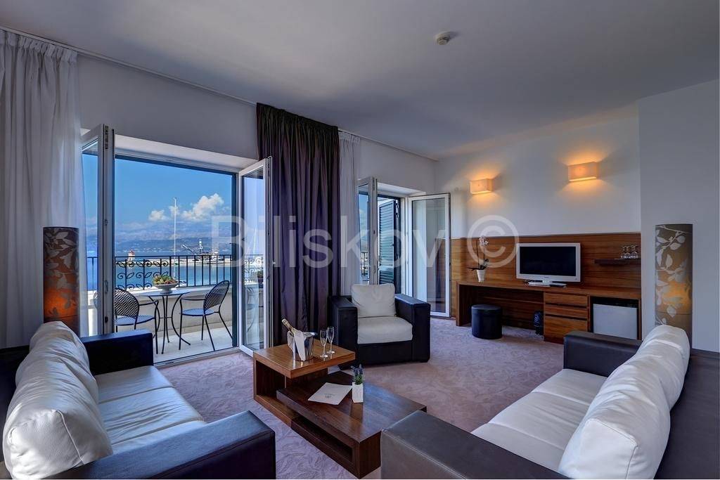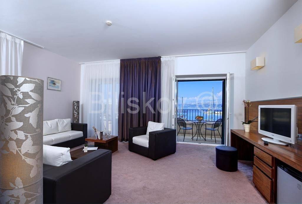 8 hotelskih apartmana sa terasom ili loggiom s pogledom na more, dnevnim boravkom sa rasklopivim ležajem, kupaonicom, satelistskim TV prijemnikom, mini barom, fenom i sefom. Veličina sobe: cca. 40 m2