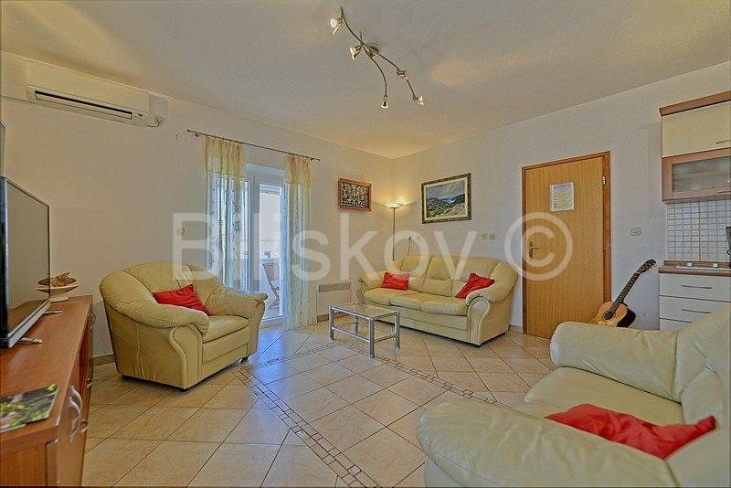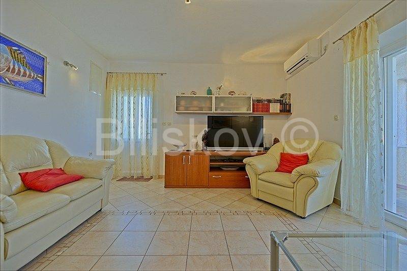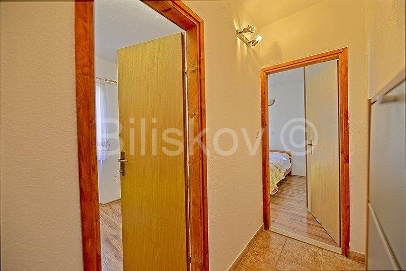 Zahvaljujući konfiguraciji terena, sa svake etaže pruža se prekrasan pogled na more. Kuća se nalazi nedaleko od plaže, a opet pruža mir i intimu. Idealna je za obiteljski odmor i za turističke svrhe, odnosno za obje kombinacije.