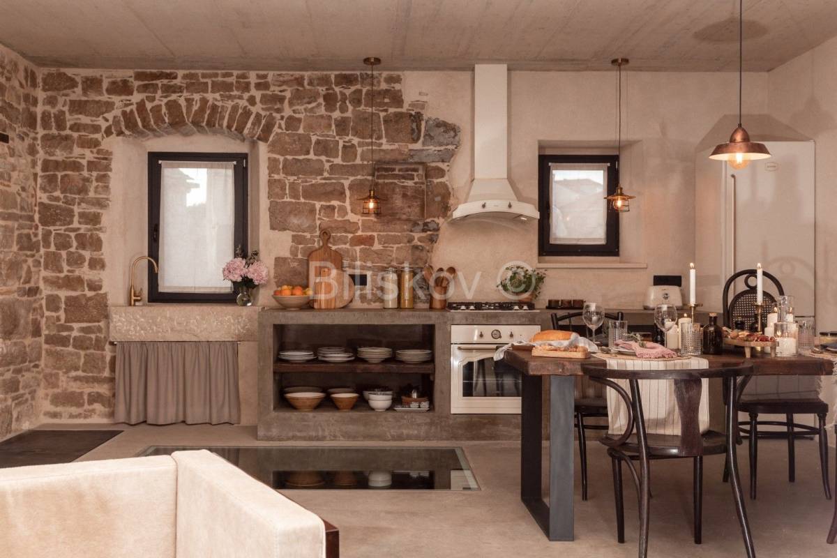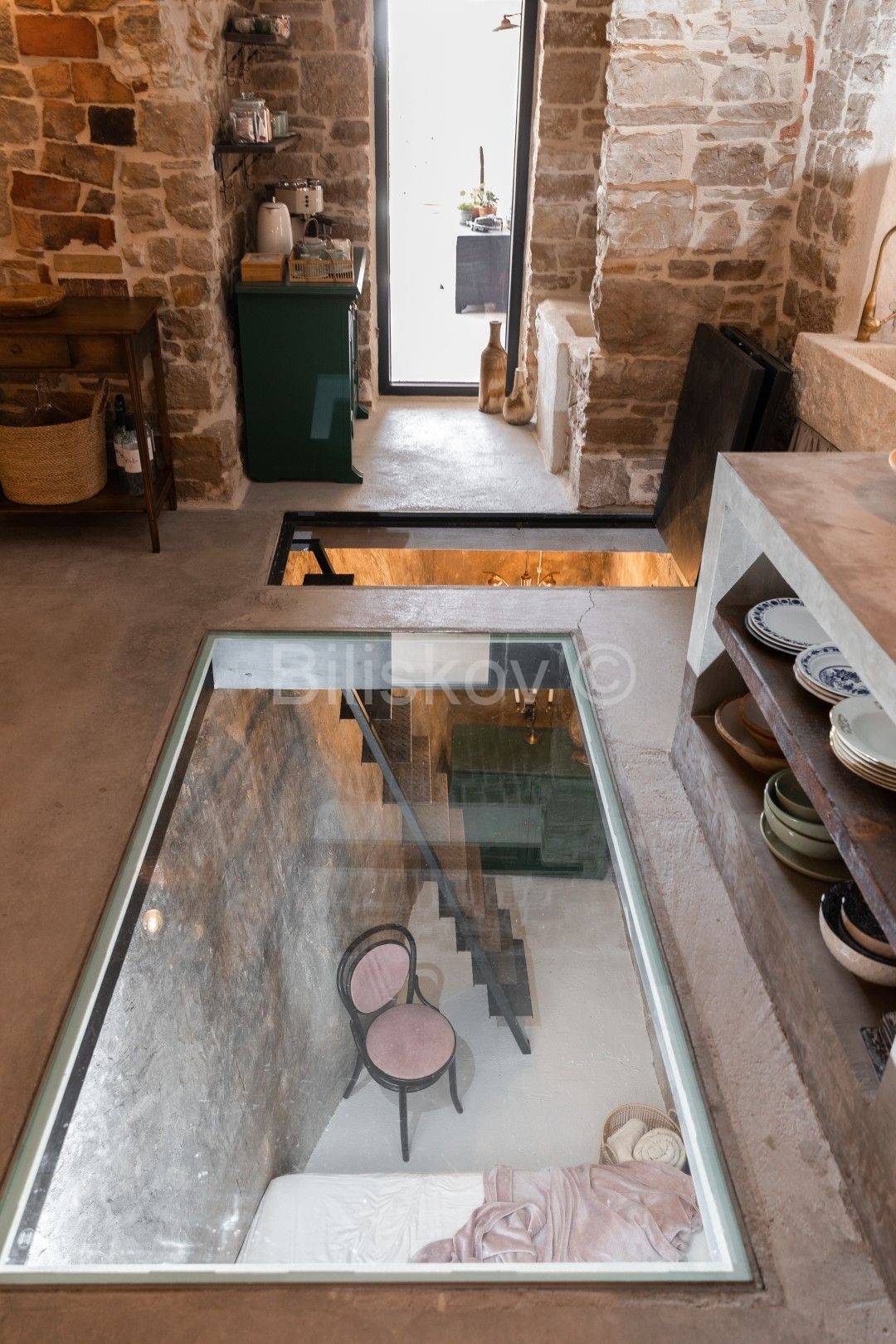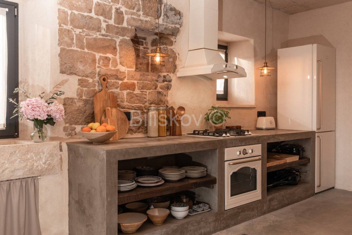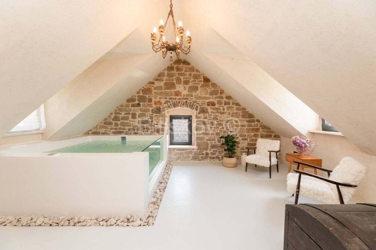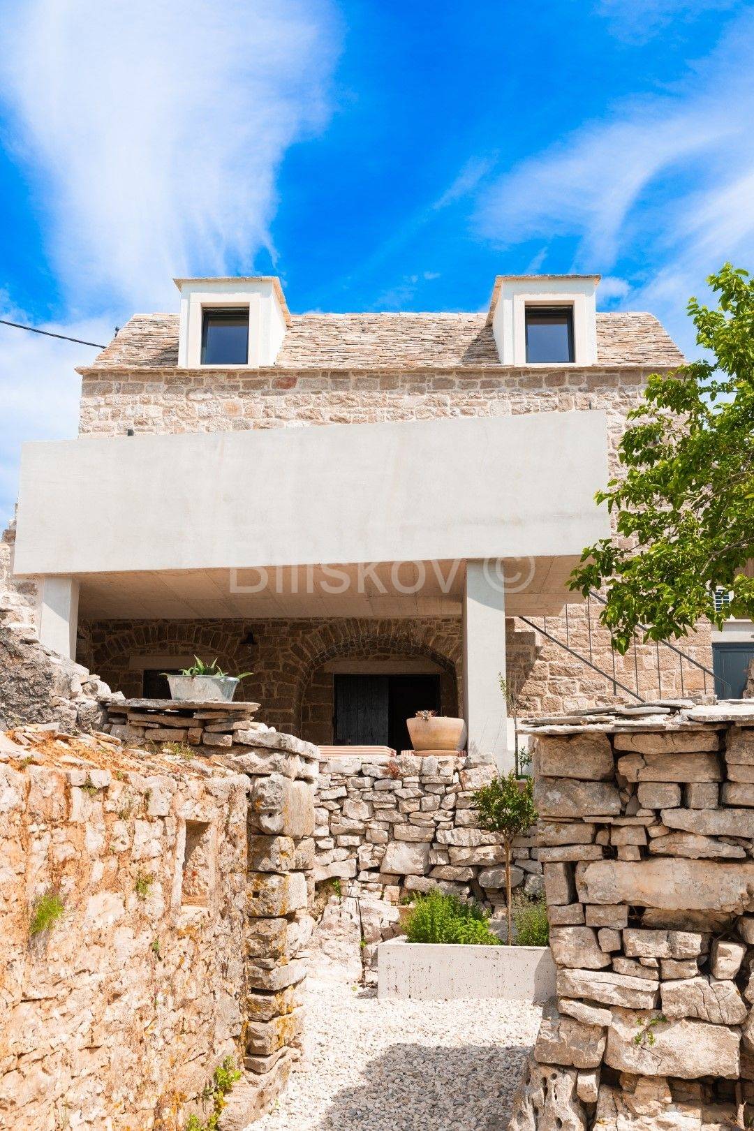 Brač, 6km od mora, kompletno restaurirana kamena kuća, potpuno podređena užitku. Stambena površina kuće je 190m2, a nalazi se na parceli od 500m2.