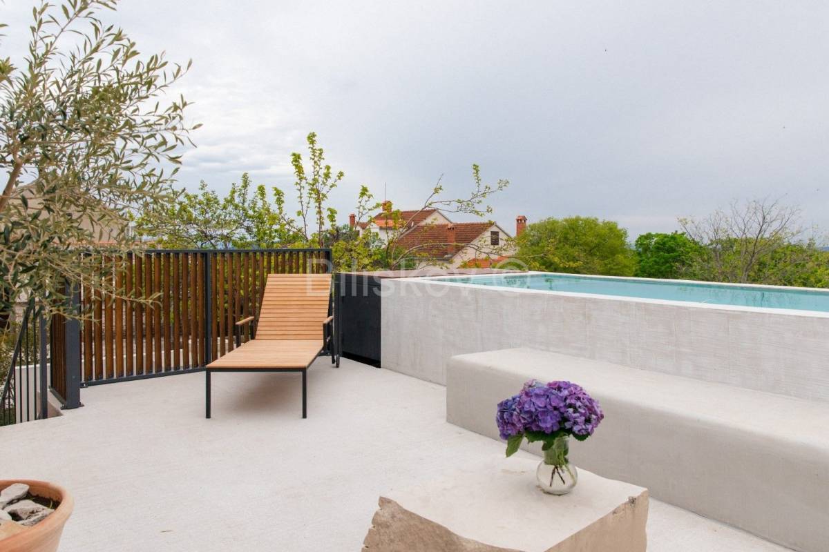 Na prvom katu se nalazi grijani bazen s ugrađenim mlaznicama i terasa za uživanje u suncu ili sjeni stare murve.