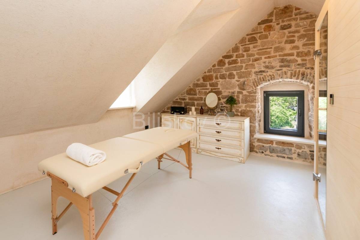 Potkrovlje je prostor za uživanje u spa zoni: sauna, jakuzzi i stol za masažu.
