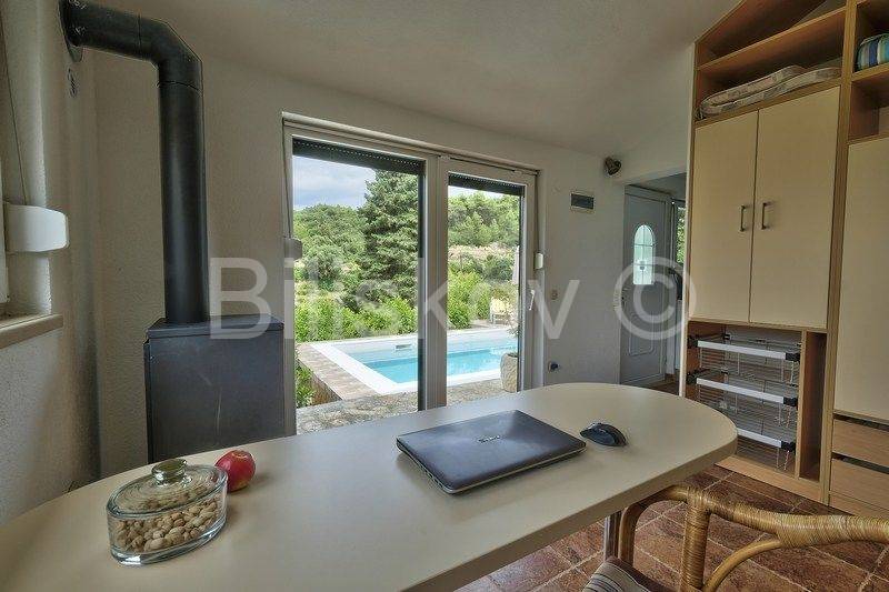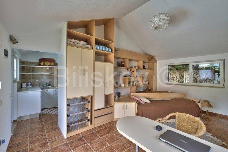 Osim idilične atosfere eksterijera, odlika ove nekretnine je i moderan unutarnji dizajn, korištenje prirodnih i profinjenih materjala, mramor koji slijedi originalni karakter otoka Brača.