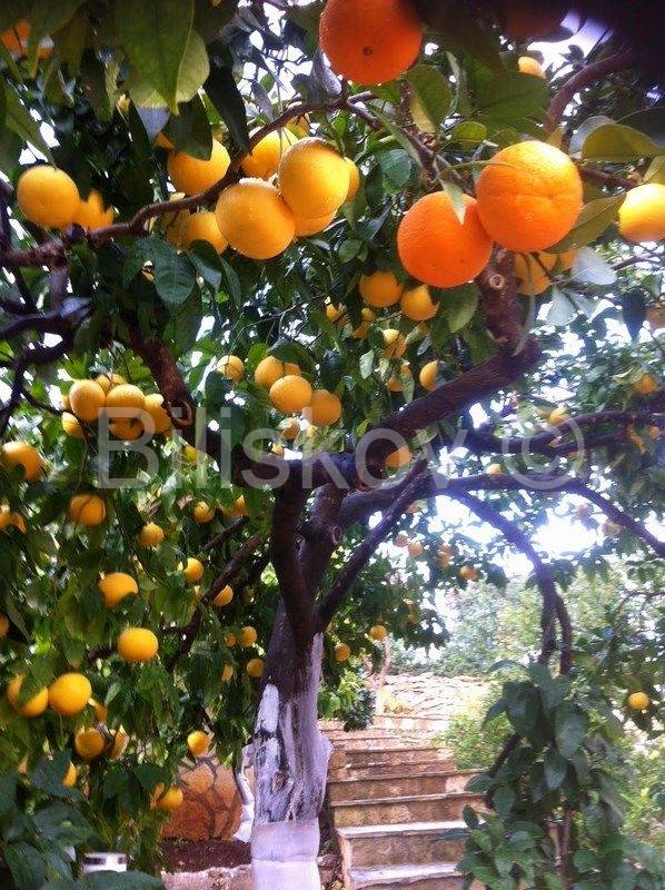 Na prostranoj okućnici od 1000 m2 nalaze se dugogodišnja stabla naranči (čak 12 stabala), grejp, šipak, limun, pomikol, vinova loza na brajdi (odrina).