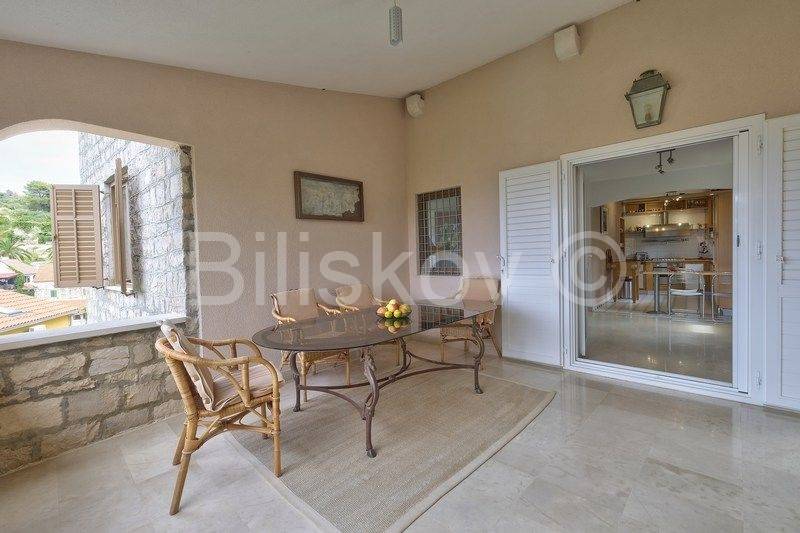 Cijelo imanje je idealno smješteno na uzvisini, odakle se proteže neponovljiv panoramski pogled na mjesto Splitska. Pogled podsjeća na romantične razglednice. Slikovito mjesto Splitska je poznato po jedinstvenim uvalama,a sa ove nekretnine je pogled na centralni dio mjesta i uvalu.
