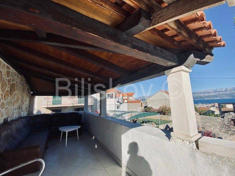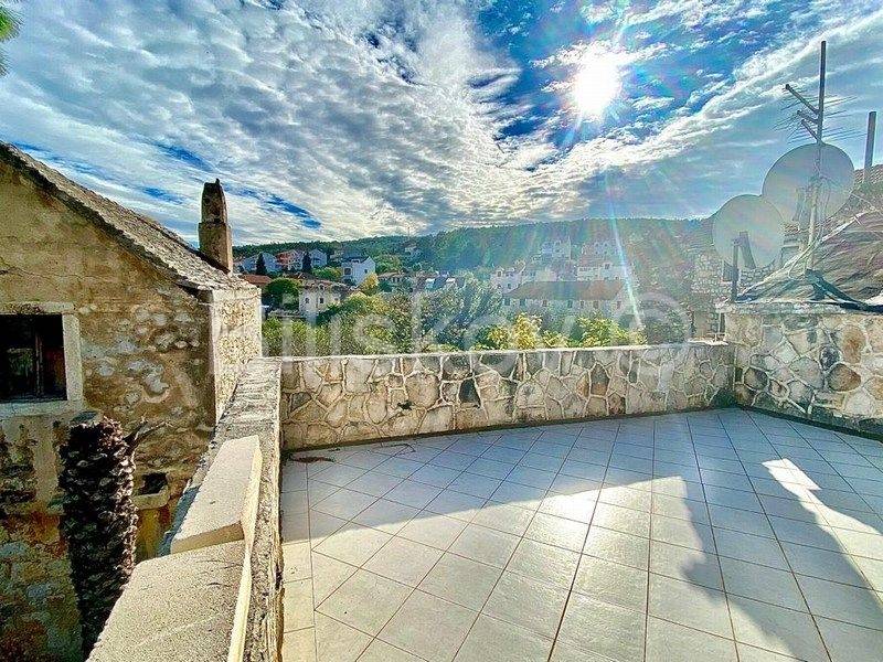 Brač, Supetar dvojna kuća u centru, bruto građev. površina objekta je 212 m2, tlocrtno 124 m2, na parceli ukupne površine od 126 m2.