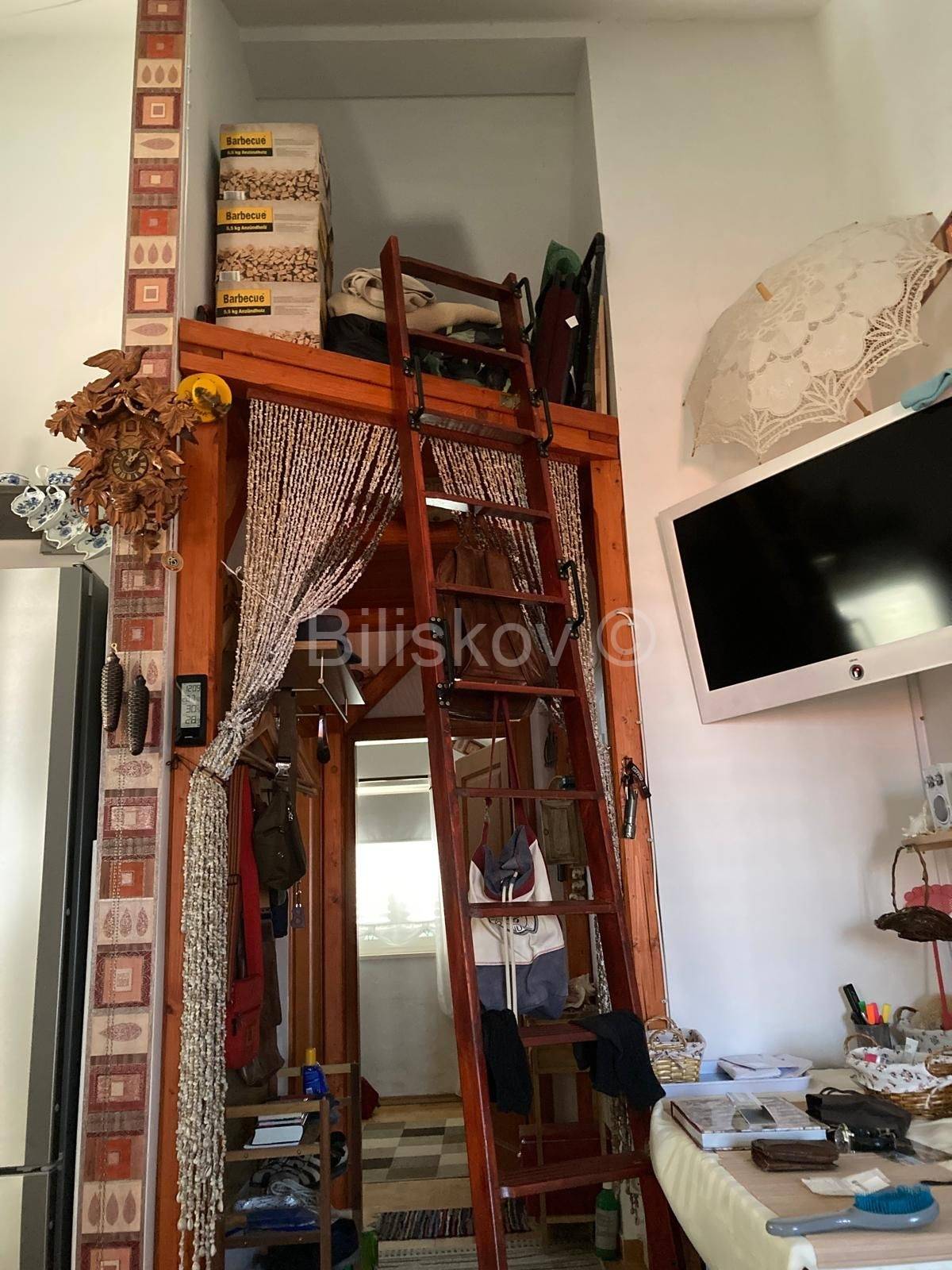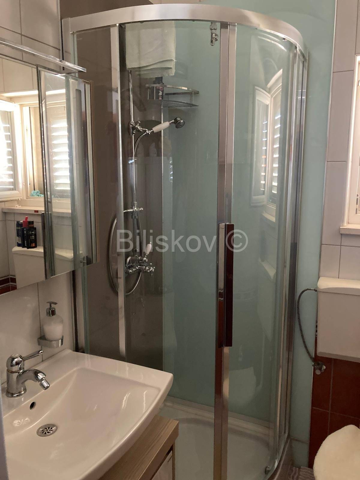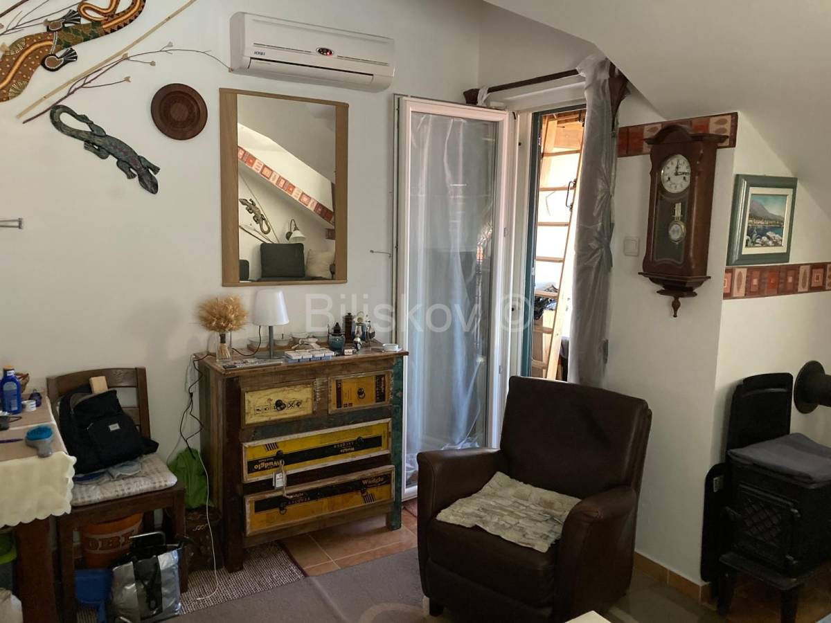 Brač, Supetar, jednosoban stan površine 34,4 m2 s lođom površine 6,58m2, parkirnim mjestom površine 12,5m2 te dodatnim prostorom u potkrovlju koje nije uračunato u stambenu površinu.