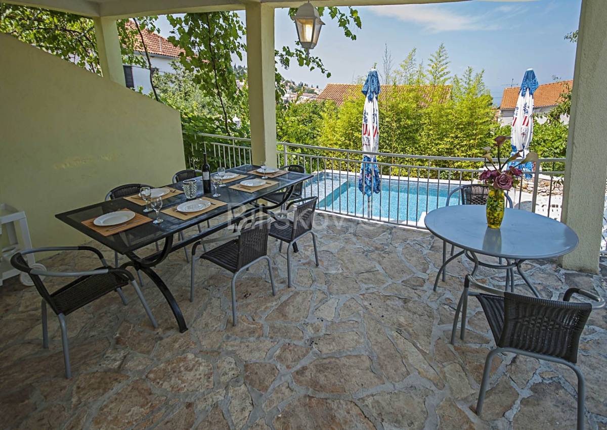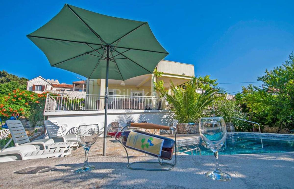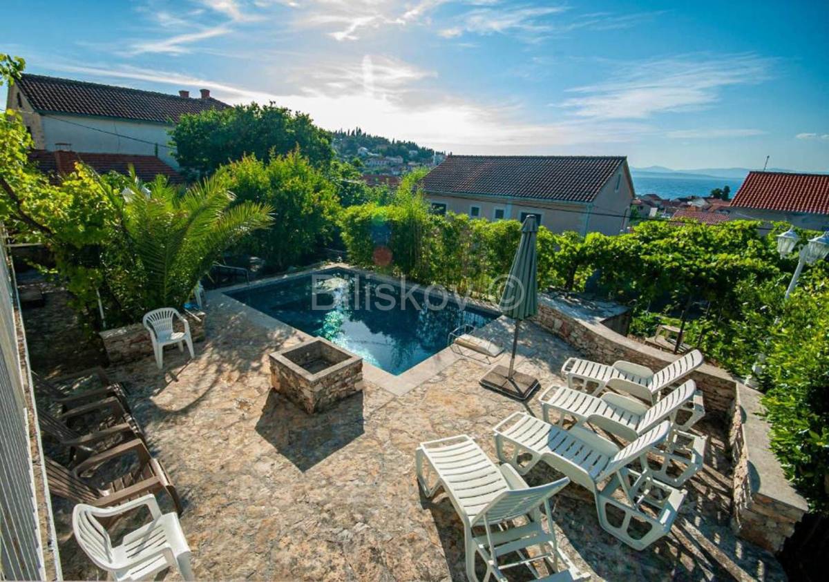 Brač, Sutivan, samostojeća kuća stambene površine 150 m2 na dvije etaže, izgrađena na zemljištu od 1230 m2, bazen, parking za 4 - 6 automobila i kultivirana okućnica.