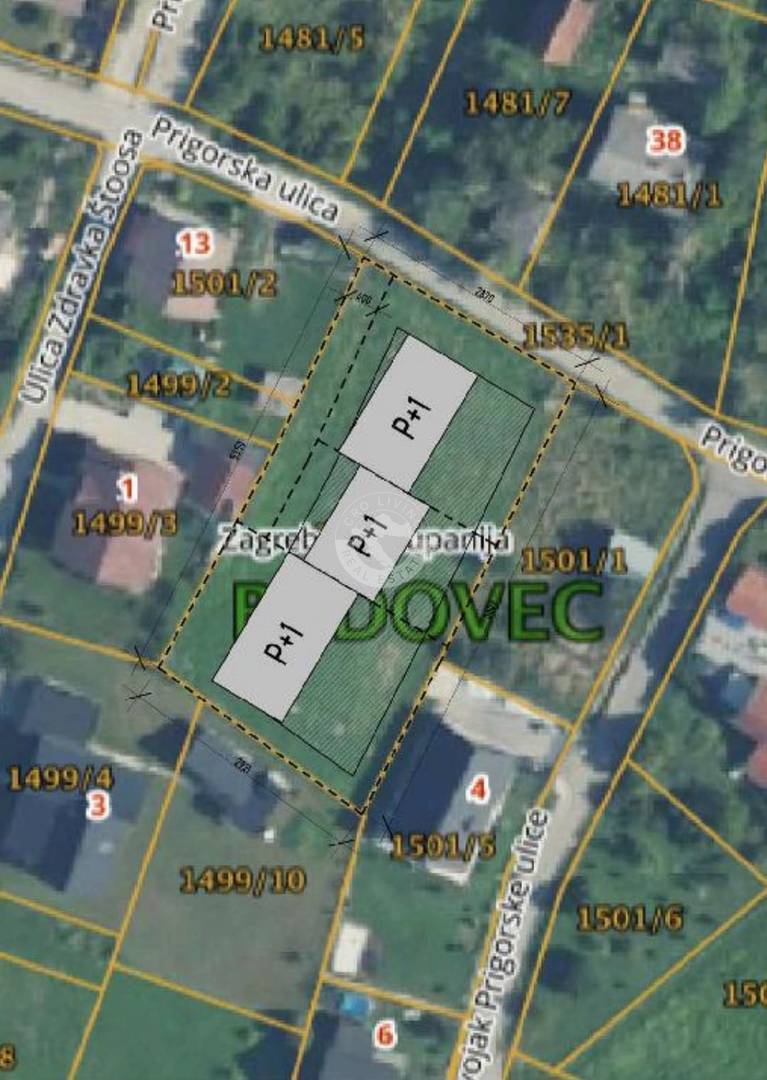 Mogućnost parcelacije čestice na tri dijela - obiteljske kuće u nizu