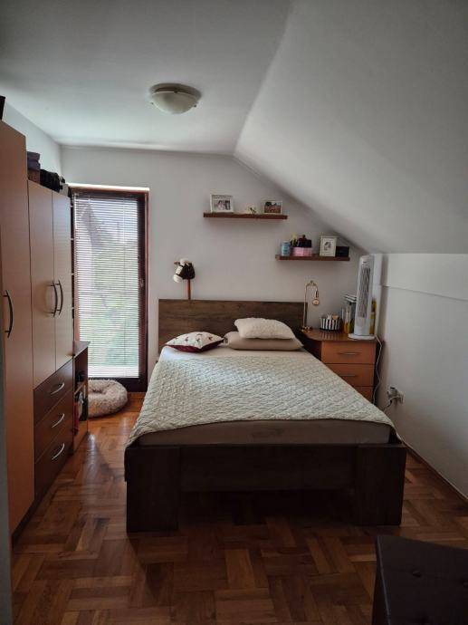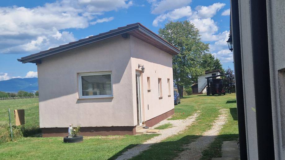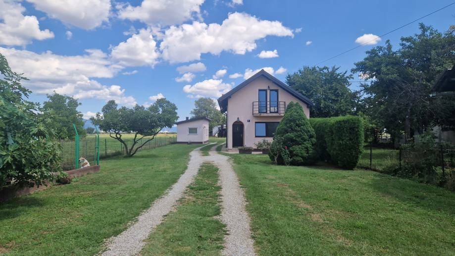 Prodaje se prekrasno imanje na 3497 m2 na kojem se nalazi kuća sa 2 stambene jedinice ( 2-sobnim stanom 59 m2 i 3-sobnim stanom 80 m2 ), pomoćnom zgradom uređenom kao garsonijera 37,66 m2 i poljoprivrednom zgradom ( nekad bio štagalj u kojem su bila 4 konja, postojeća dozvola za uzgoj kopnenih životinja ). Kuća kompletno renovirana 2007 god.: krov, sve instalacije ( struja, voda ), parketi, fasada, termofasadni stiropor... Vodovod gradski, kanalizacija septička ( plaćen priključak za kanalizaciju, potrebno iskopati cca 70 m do kuće i priključiti ).