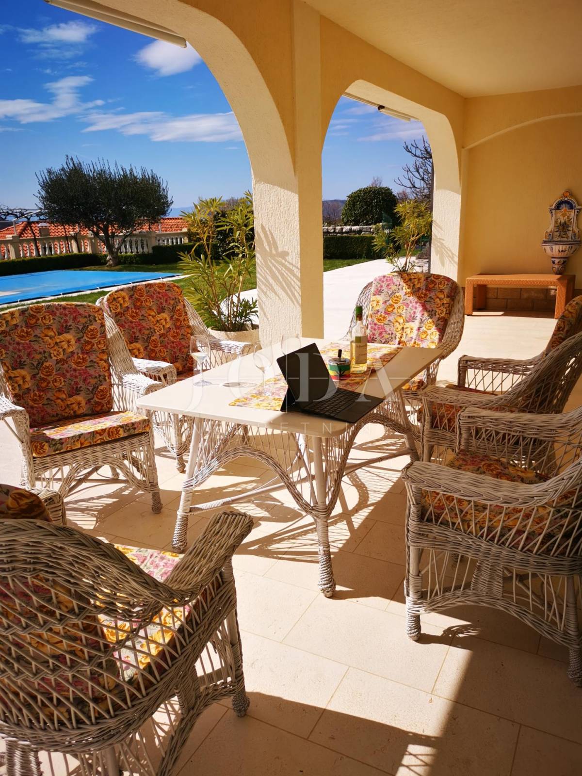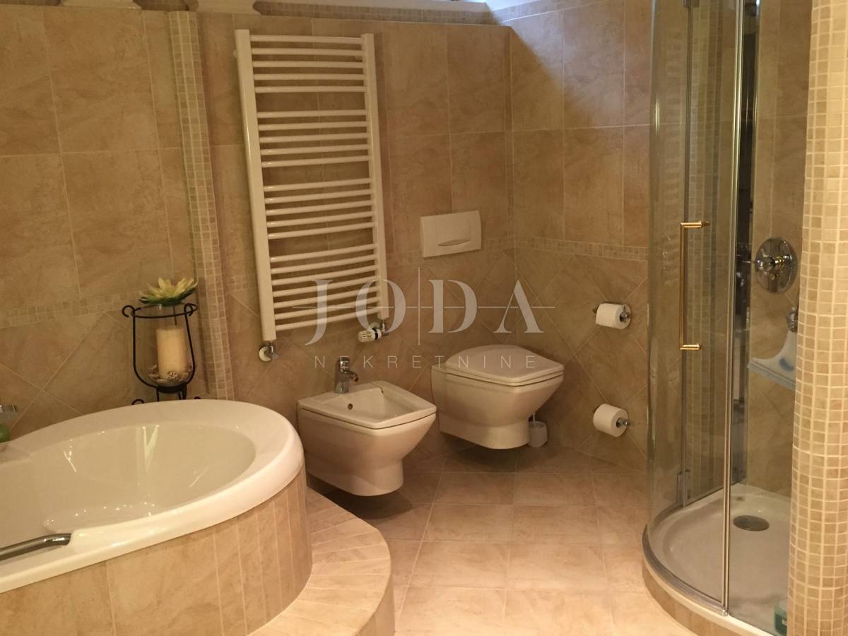 Vila ima dodatnu prostranu prostoriju za druzenje, natkrivenu terasu, kućno kino, ljetnu kuhinju, saunu, bazen i lijepu okućnicu.