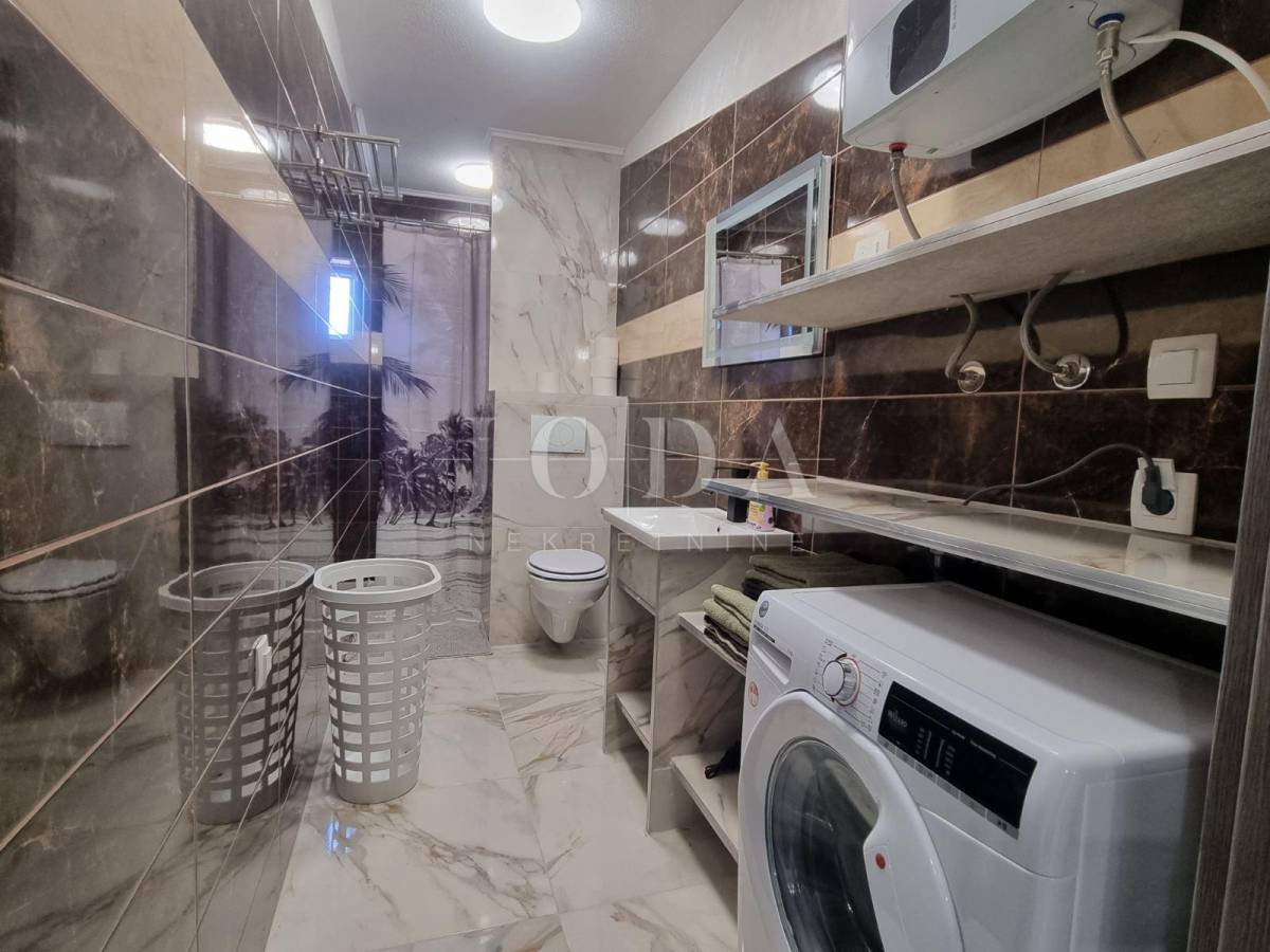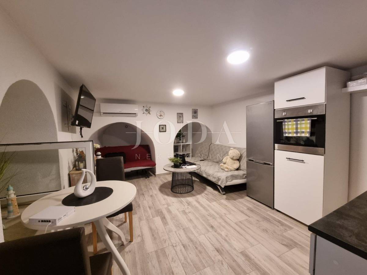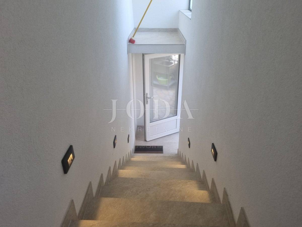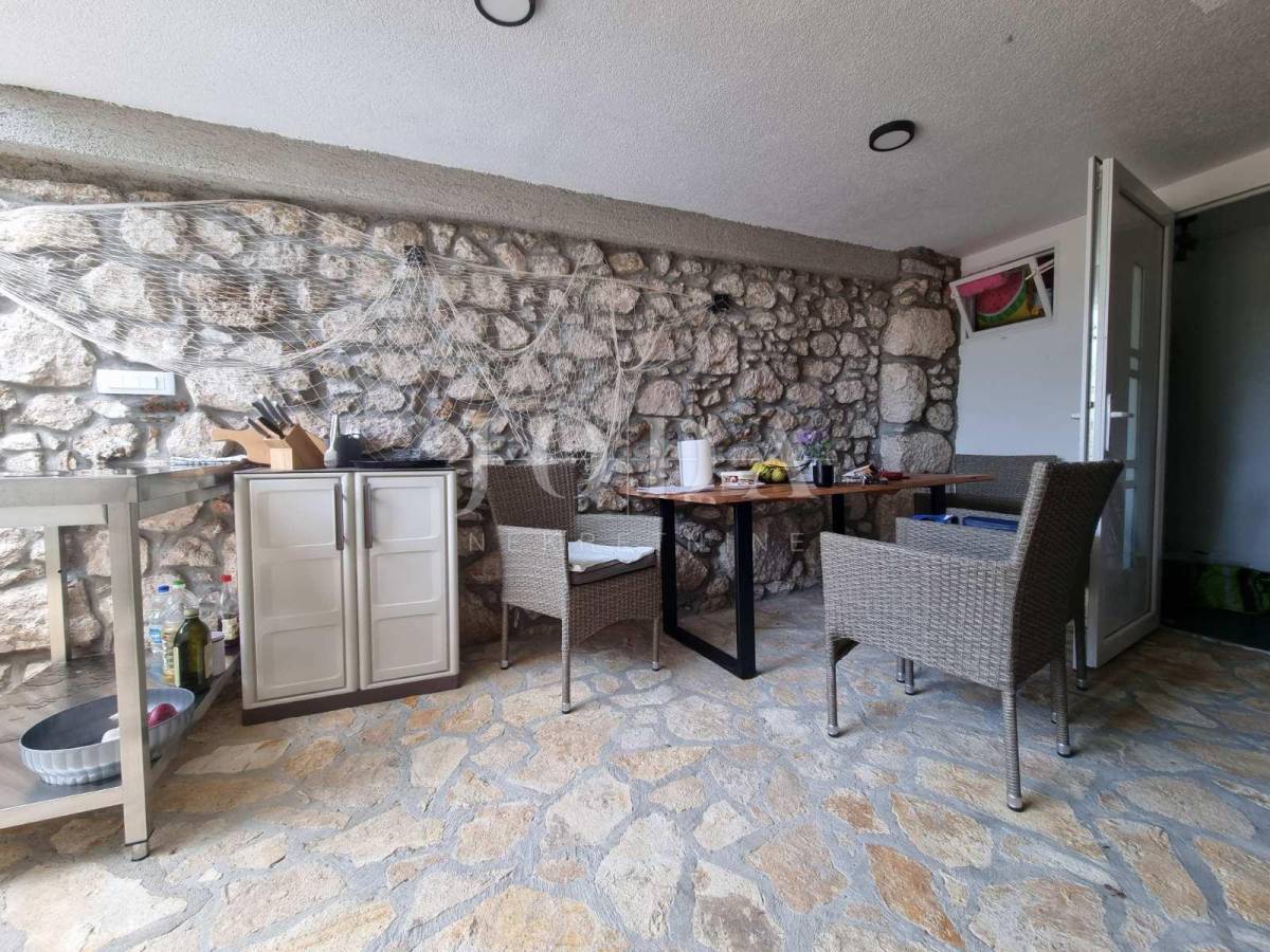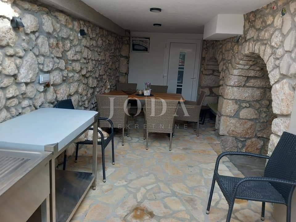 Prodajemo kuću sa dvije stambene jedinice ukupne površine 106m2. U prizemlju se nalazi jednosobni stan površine 47,75m2 sa zatvorenim dvorištem u kojem se nalazi roštilj te dodatni prostor koji se koristi za spremište. Na prvom katu se nalazi novoizgrađeni dvosobni stan moderno uređen površine 56,68m2 sa lijepom terasom i pripadajućim spremištem. Nekretnina je u potpunosti opremljena i klimatizirana te spremna na korištenje za stanovanje preko cijele godine ili za odmor i uživanje. Prilikom kupnje kuće postoji mogućnost kupnje i parcele od 125m na kojoj se mogu izgraditi dodatni sadržaji.